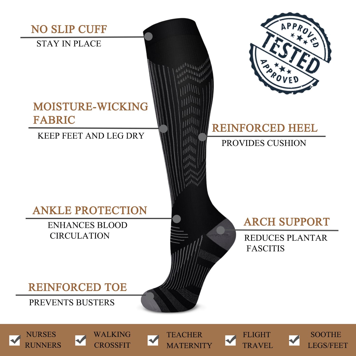 ★Alleviate Pain with Technology - Our Medical Grade Copper Compression Socks they are designed to improve blood circulation and oxygen flow, prevent cramps, fatigue, swelling, and aid in muscle recovery, varicose veins, and diabetes.