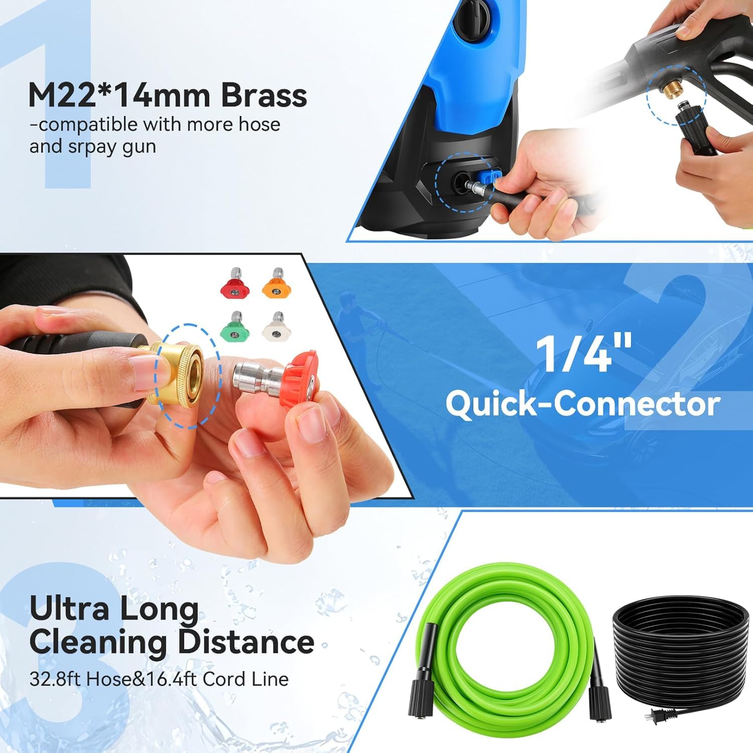 EFFORTLESS ASSEMBLING: Our pressure washer can be assembled in just minutes, making it incredibly easy to use. Simply follow the included instructions, and you'll have your pressure washer ready to go in no time. Say goodbye to complicated setups and hello to effortless cleaning