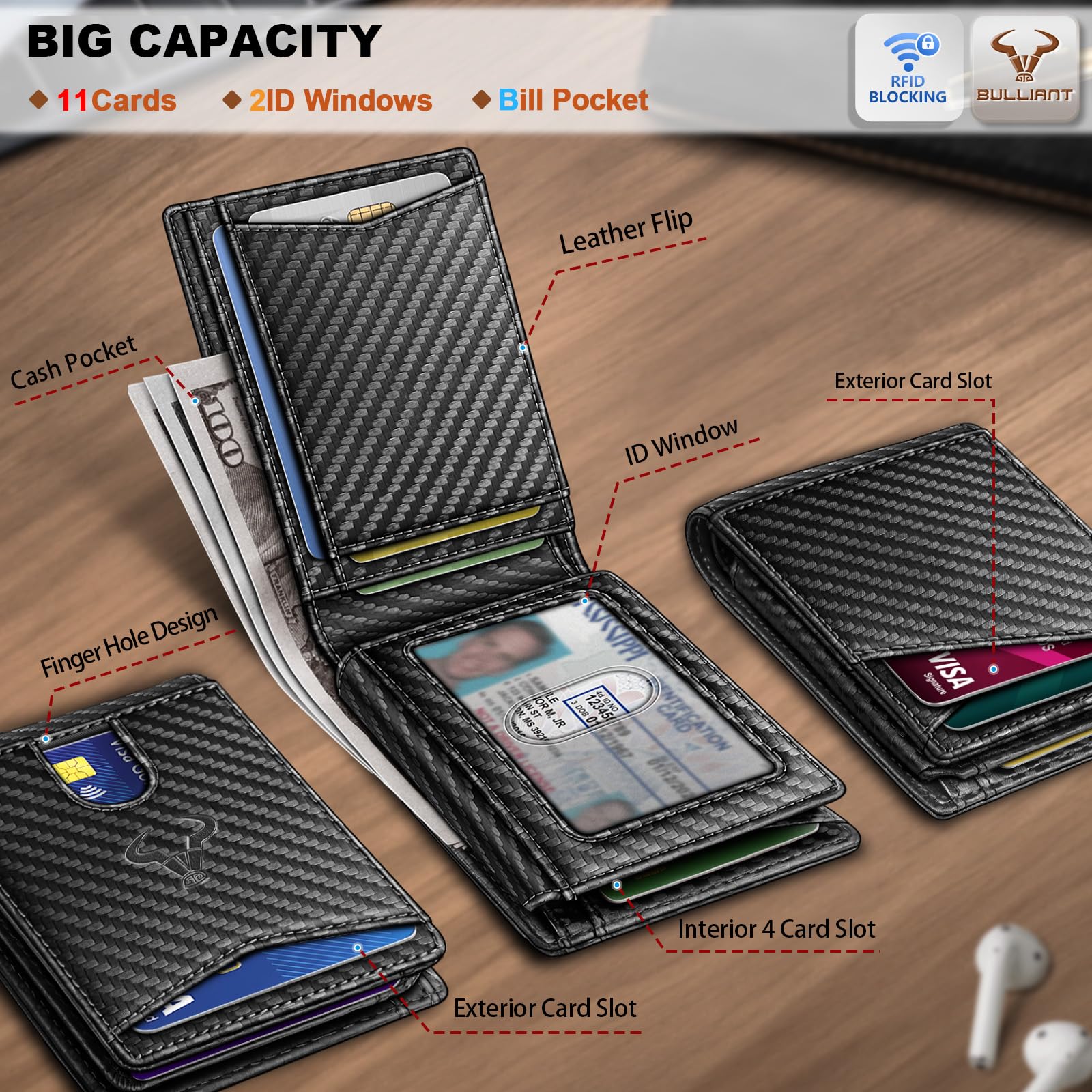 AMPLE STORAGE--Never run out of card space again with our wallet's impressive storage capacity. It can hold up to 11 cards,2 ID windows and 1 billfold for all your essentials;