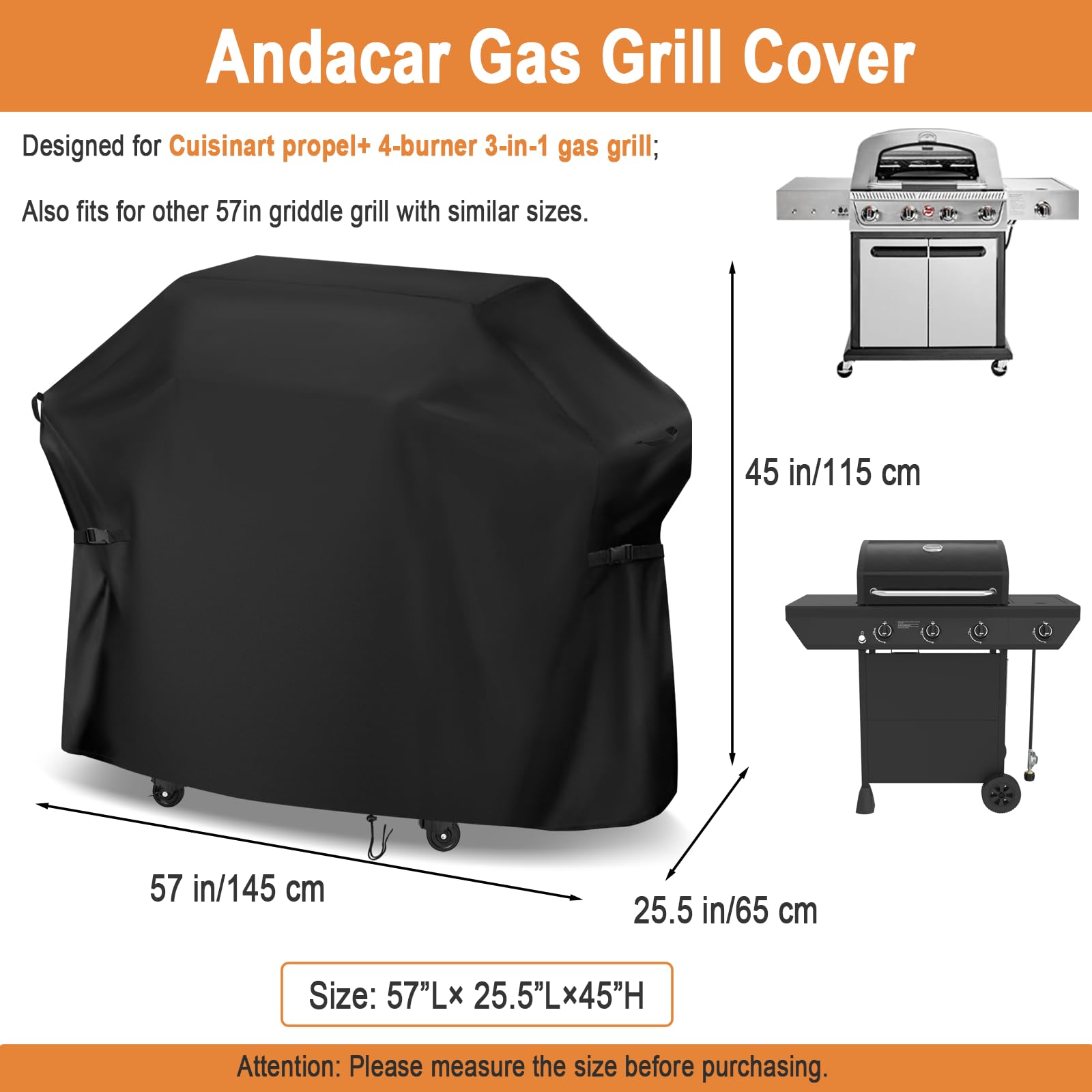 Gas Grill Cover Custom Fit: Designed for Cuisinart propel+ 4-burner 3-in-1 gas grill; Also fits for other 57in griddle grill with similar sizes