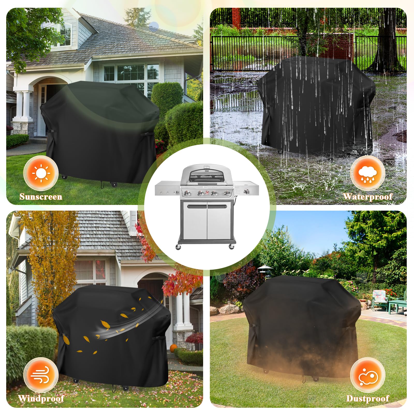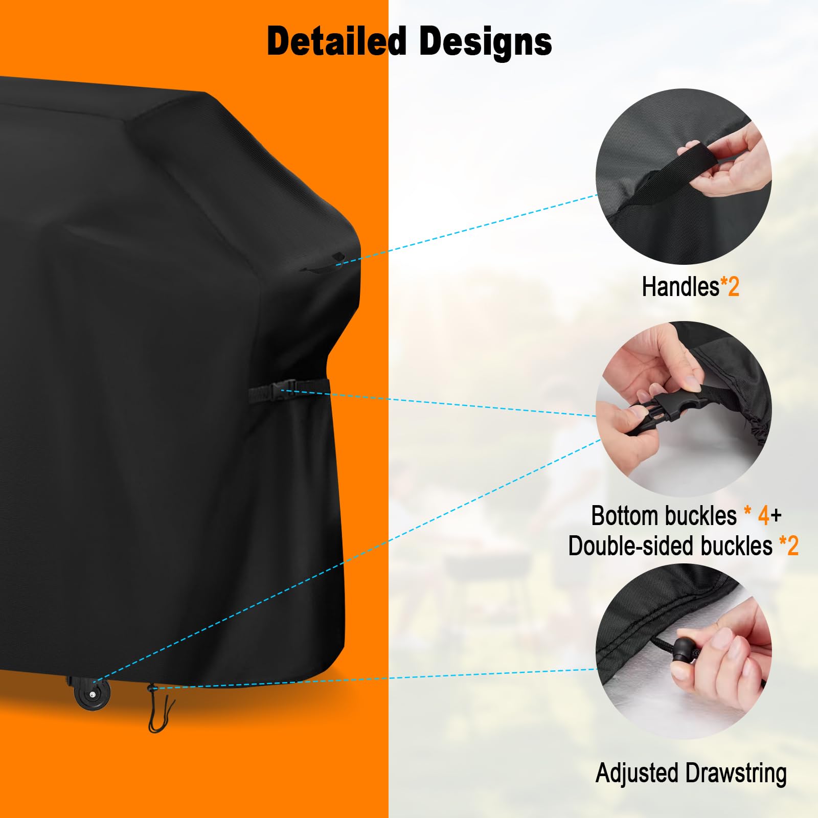 Drawstrings and Buckle: Elastic cord allows the barbecue grill cover to fit better with the burner gas grill; Adjustable buckles on the grill egs for better extra stability, so you don't have to worry about the impact of windy weather