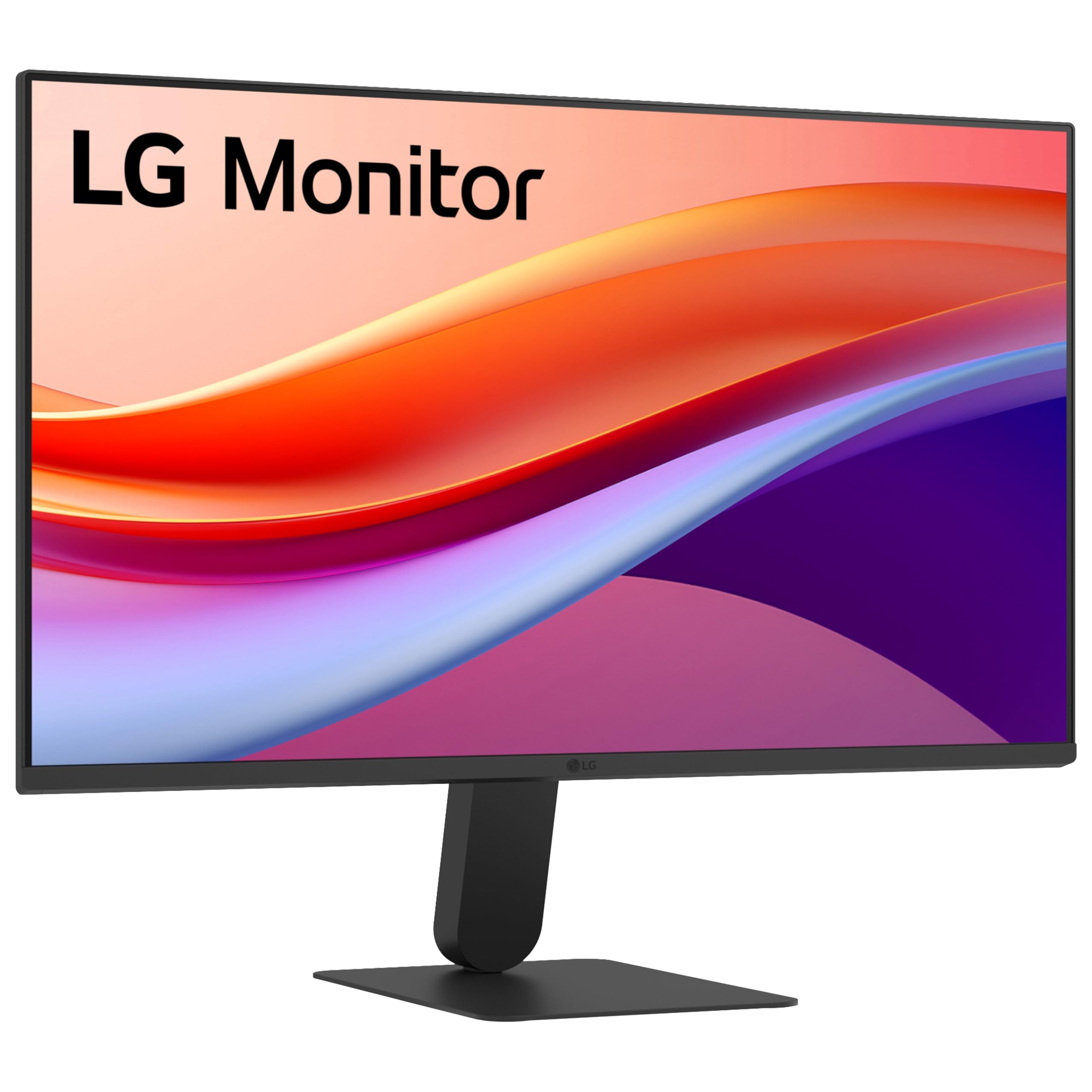 The 24" class (23.8" screen) Full HD (1920 x 1080) IPS monitor delivers sharp, vibrant visuals from virtually any angle—ideal for working ...and even playing from home. Whether you're tackling emails, browsing the web, or managing projects, this monitor helps you stay clear, focused, and productive. Its ultra-slim bezels and 3-side virtually borderless design bring a clean, modern look to any home office setup. The sleek stand adds a floating feel that’s perfect for dual monitor workstations or minimal desk spaces. A 120Hz refresh rate ensures smoother scrolling and frame transitions, while 1ms Motion Blur Reduction (MBR) keeps fast-moving visuals crisp—great for multitasking or after-hours gaming. With HDR10 and up to 99% sRGB color gamut coverage, this LG monitor delivers vivid, accurate color across everything from video calls to creative projects. Whether you're outfitting a new home office or upgrading your current work-from-home setup, the LG 27U411A-B monitor offers the clarity, speed, and style you need to stay productive and inspired. ¹Software installation required. Visit Support on LG.com to download.