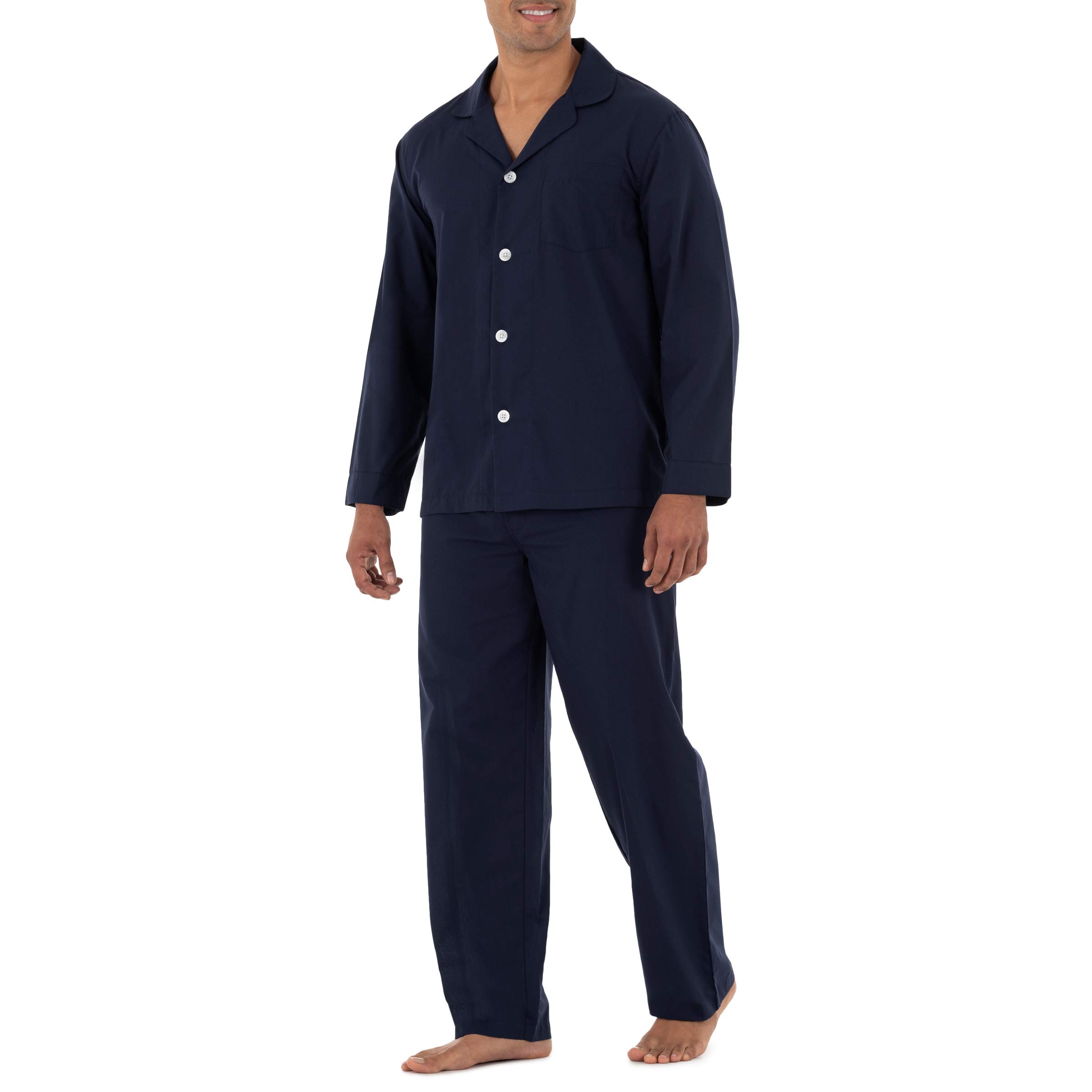 Description This fruit of the loom men's broadcloth pajama set is perfect for sleeping, lounging or relaxing around the house. Its lightweight fabric is versatile for all weather conditions and is ultra-soft to the touch.