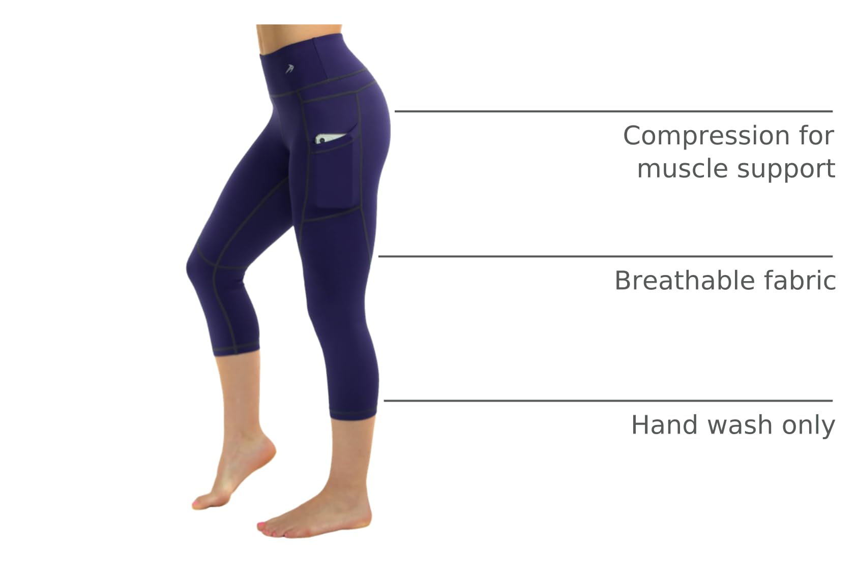 Versatile Compression Capris for Active Women: These high-waisted compression leggings with pockets are the ultimate blend of style and function. Ideal for yoga, running, or gym workouts, they provide comfortable yet firm support, perfect for women seeking tummy control leggings for both exercise and casual wear.