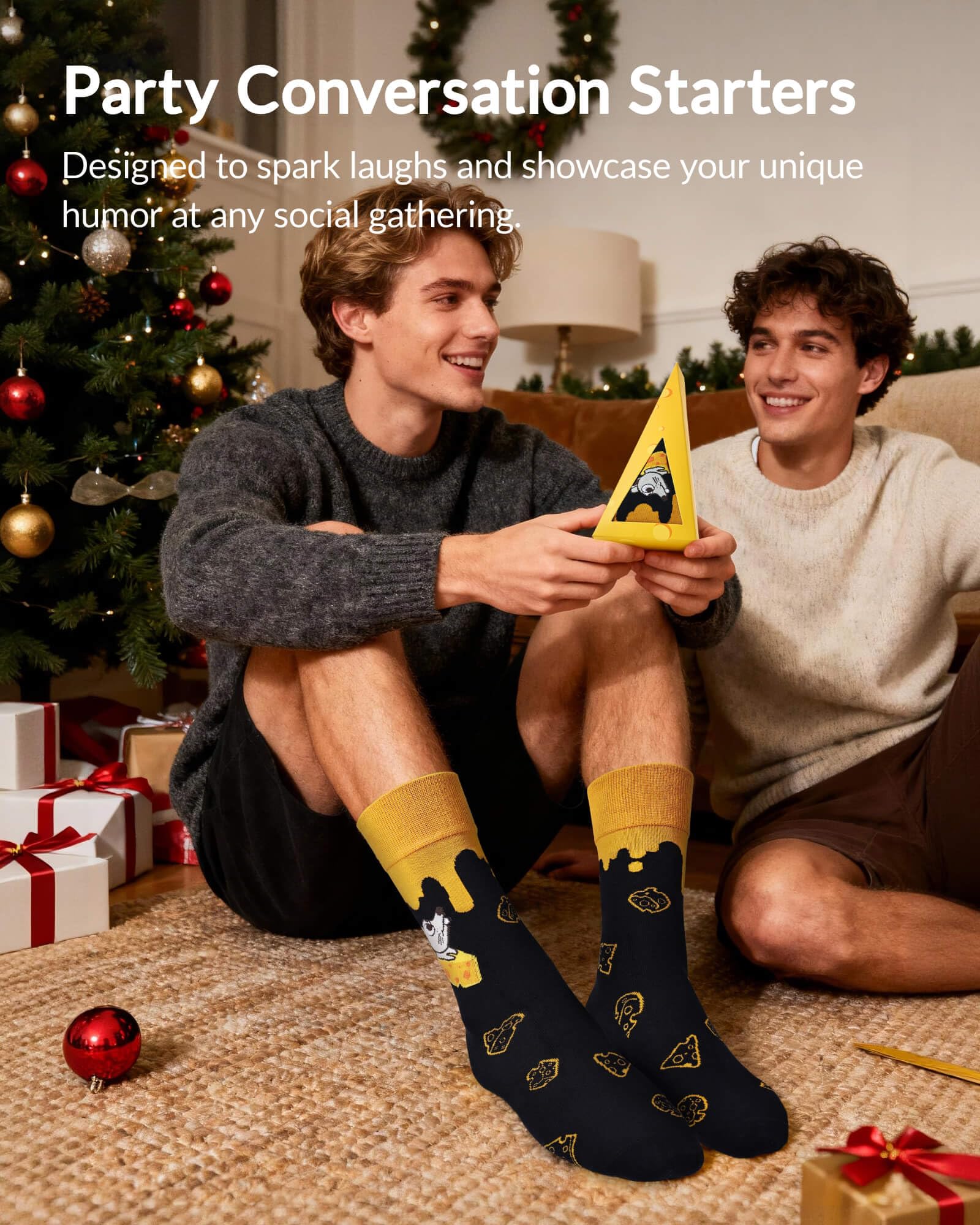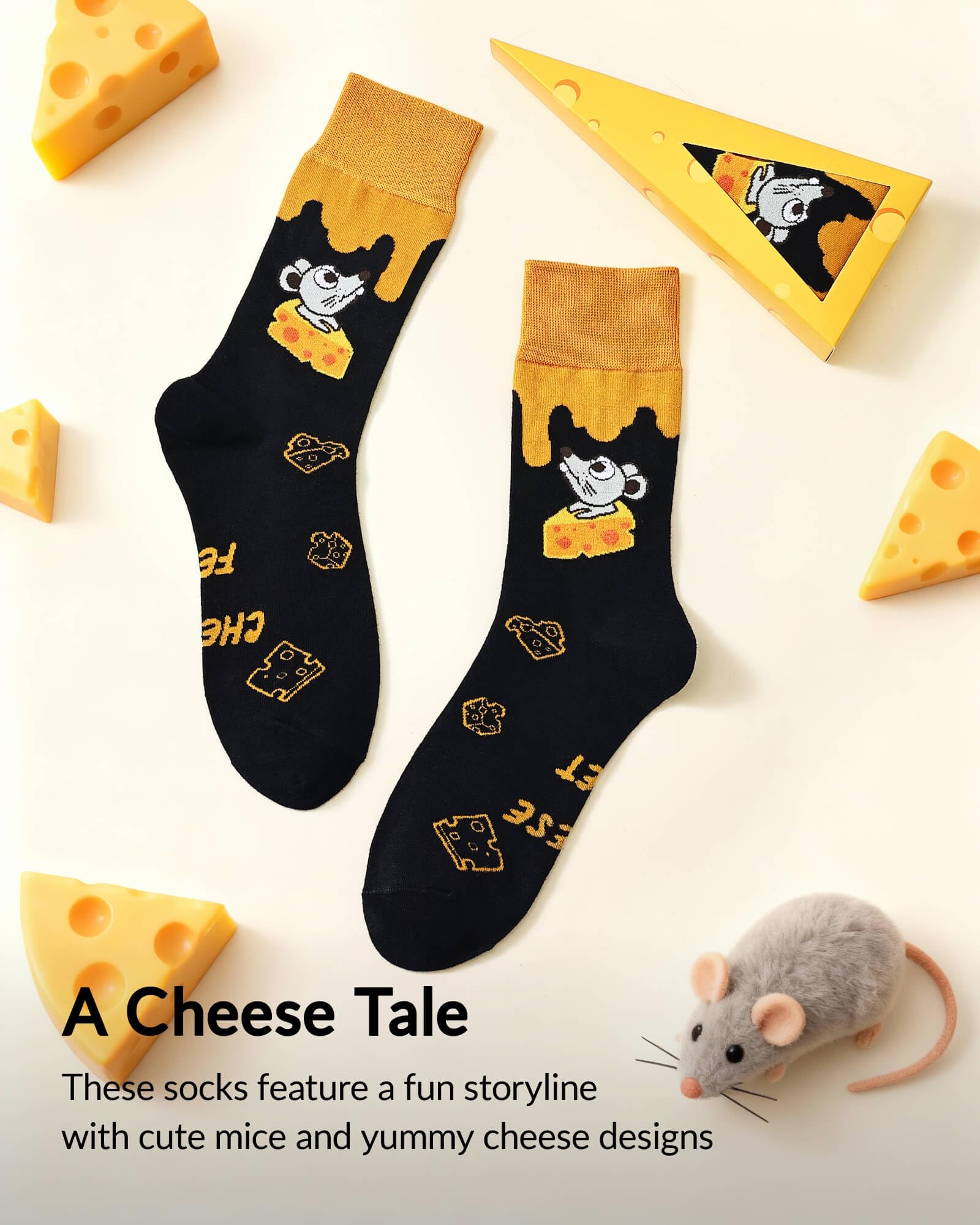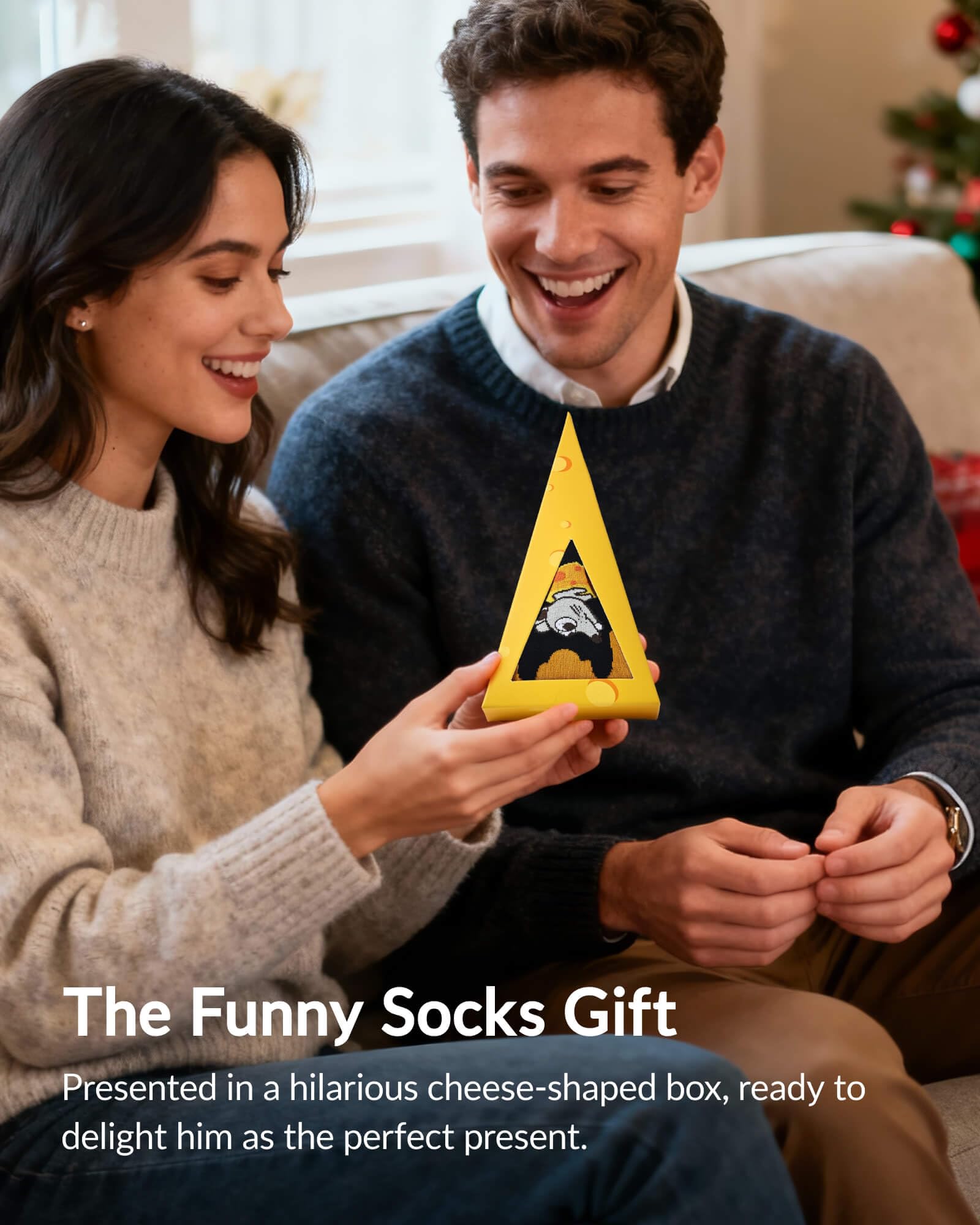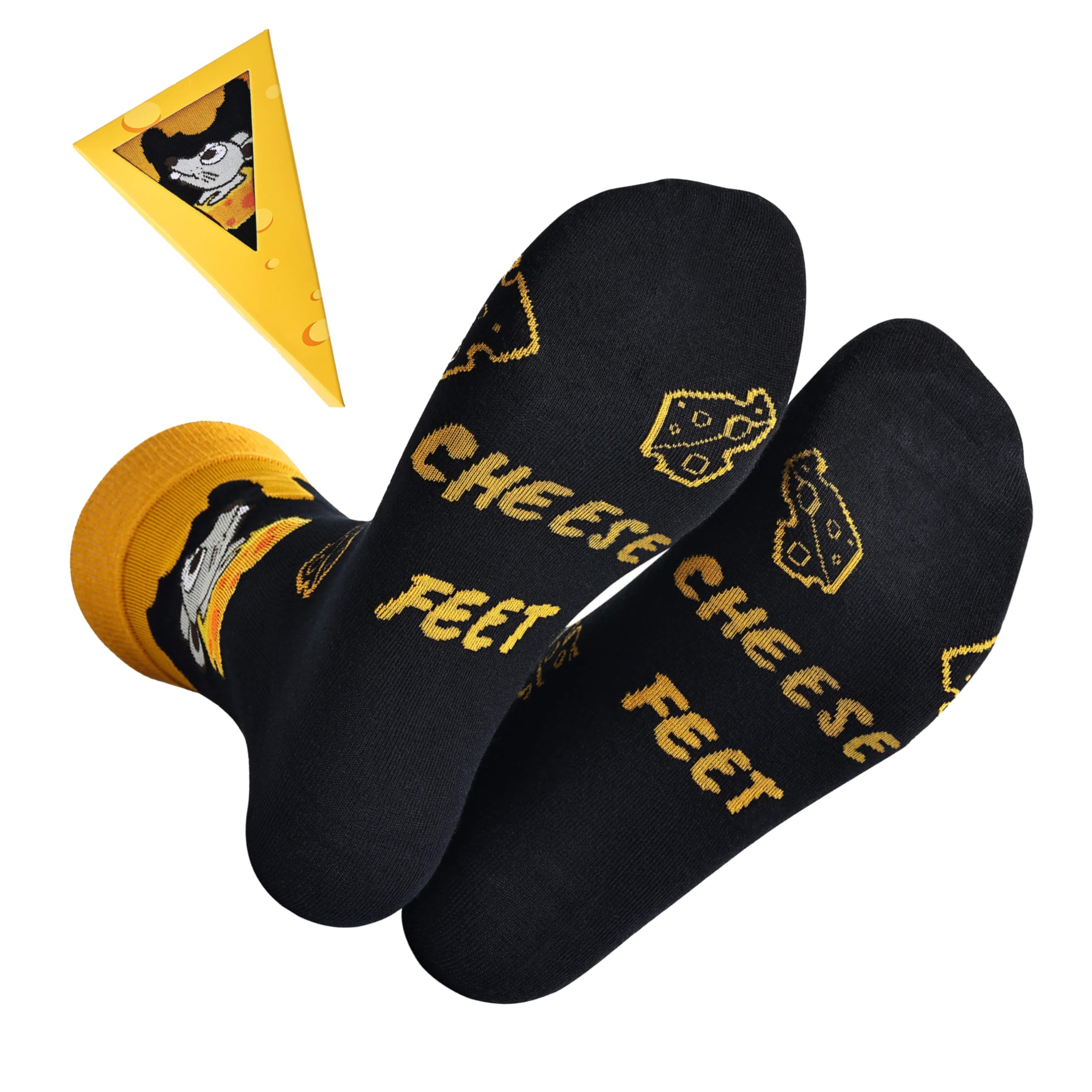 Unique Cheese Box Packaging - Each sock comes creatively packaged in a collectible cheese-shaped box that doubles as a fun storage container - perfect for display and gifting!