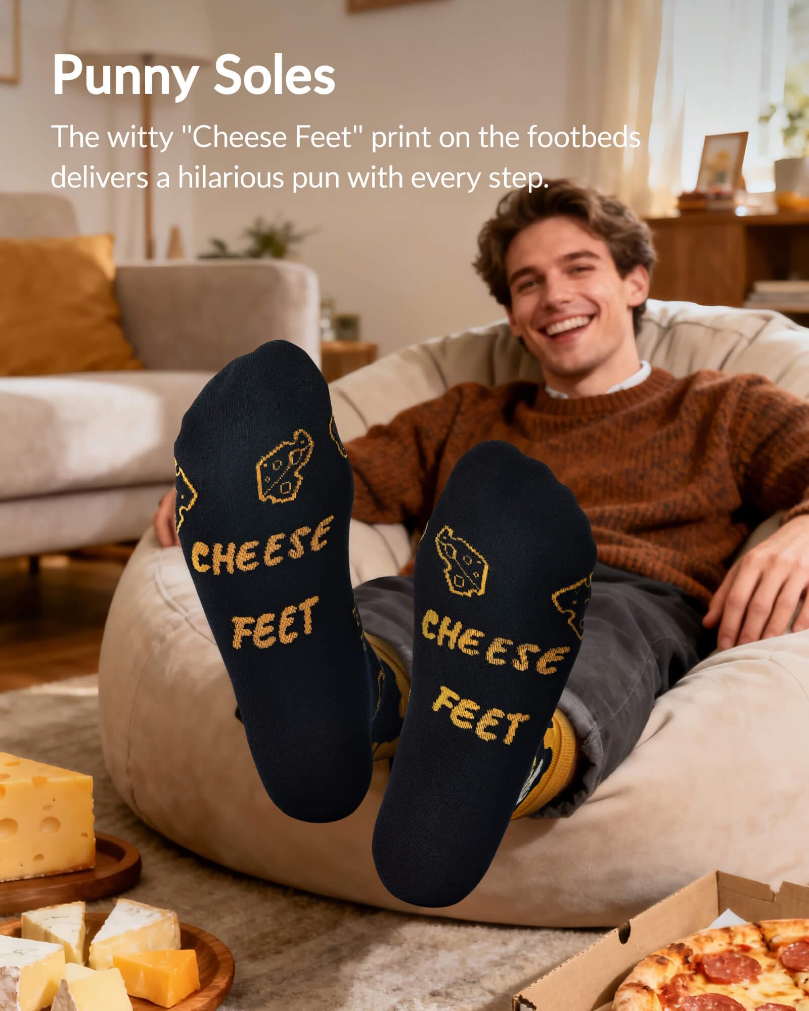 Guaranteed Giggle-Inducing Design - Get ready for compliments and laughs! The playful "Cheese Feet" print on the soles is a hilarious pun that turns your feet into a conversation starter. It’s the perfect blend of cheesy and charming that Americans love.
