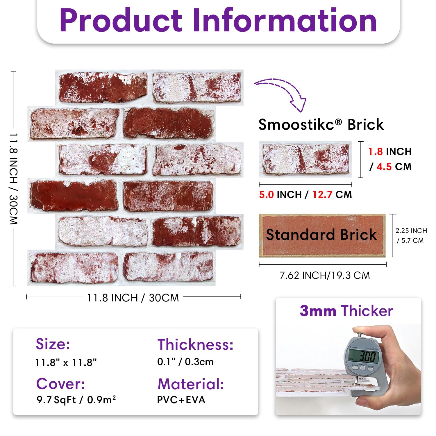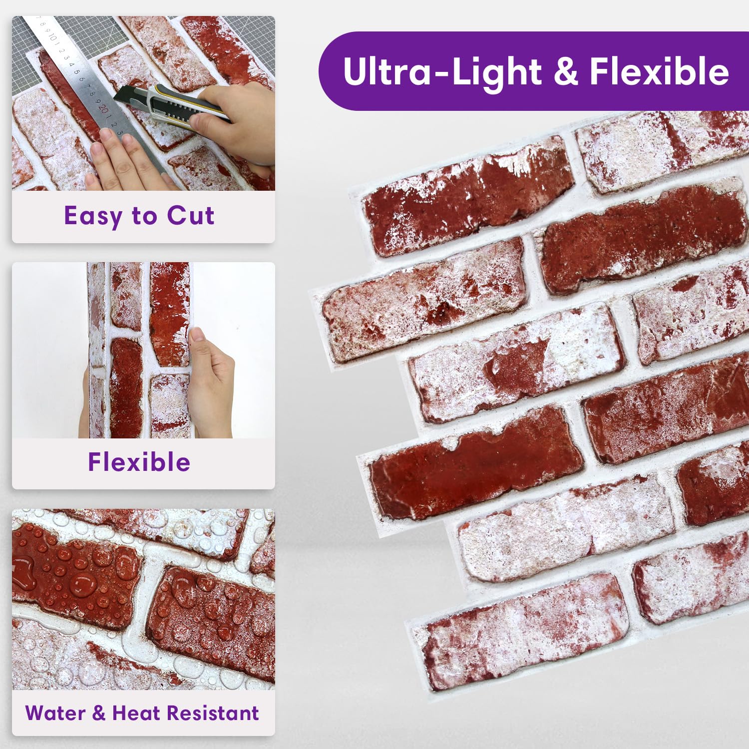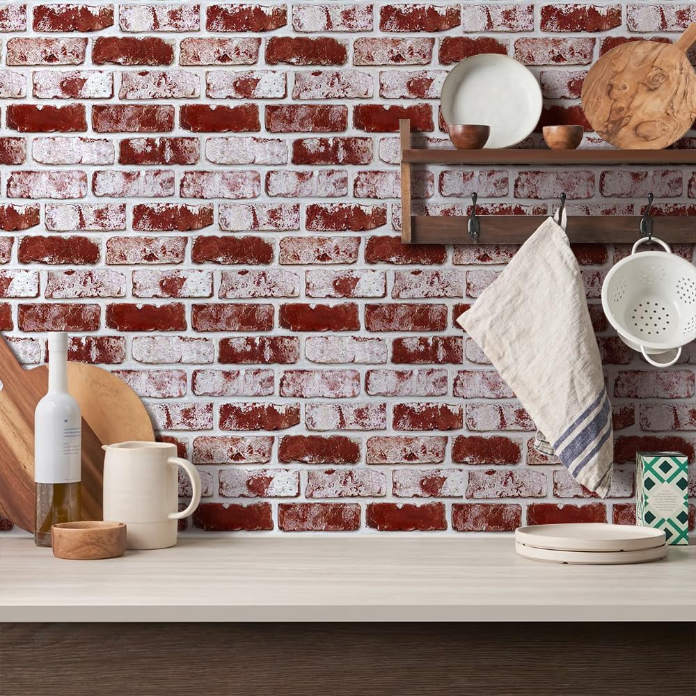 【Realistic Small-Size 3D Brick Texture】Embossed, touchable faux brick surface creates a realistic wall effect and can be painted to match your décor. Each brick is smaller than standard brick (approx. 5" × 1.8")