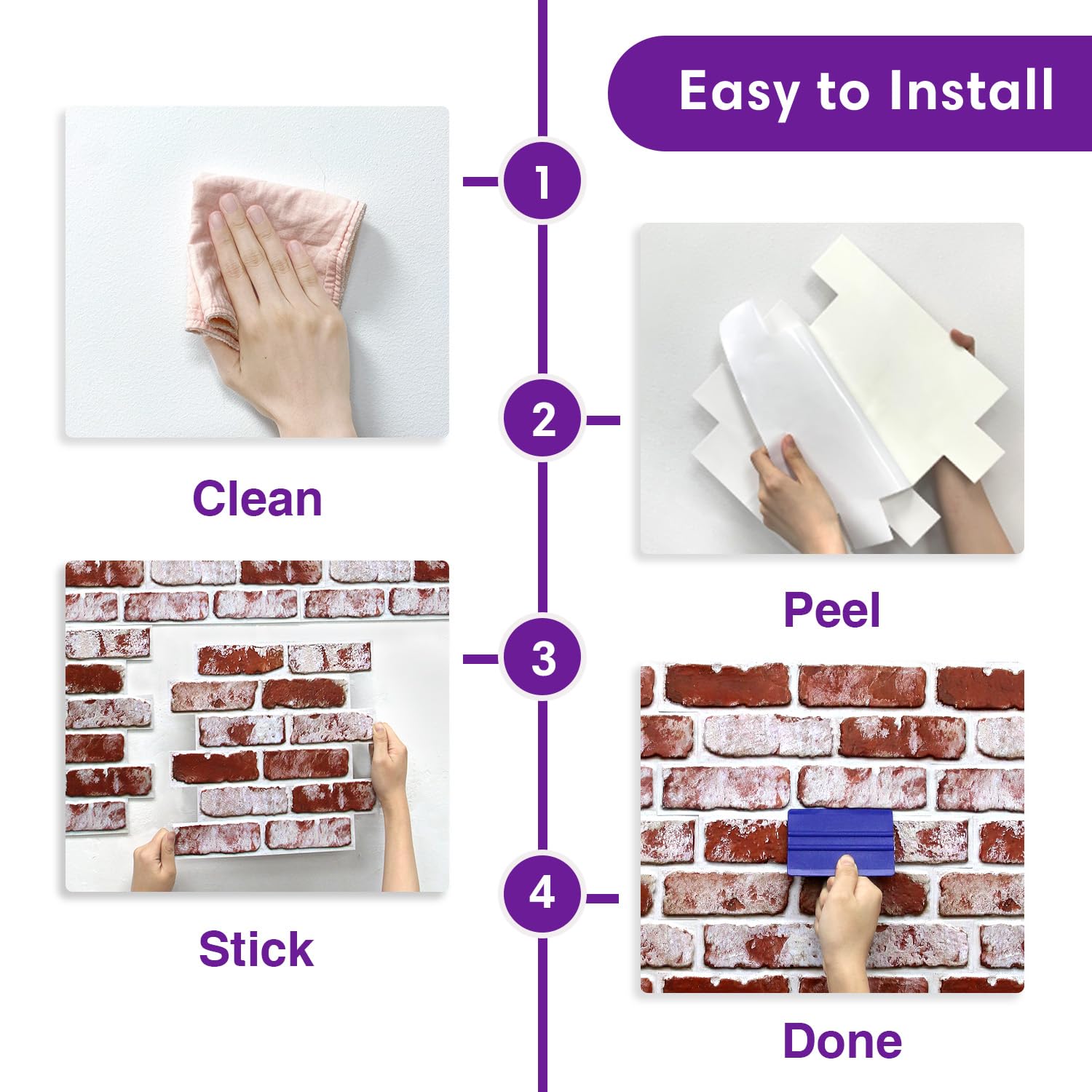 【Surface Preparation & Installation Guide】1: Apply only to smooth, clean, dry, and fully cured surfaces such as painted walls, tile, glass, or metal. 2: Installation on textured, uneven, outdoor, or high-moisture walls (such as shower walls) is not recommended. 3: Before completing the full installation, place one tile in a small area first to test.