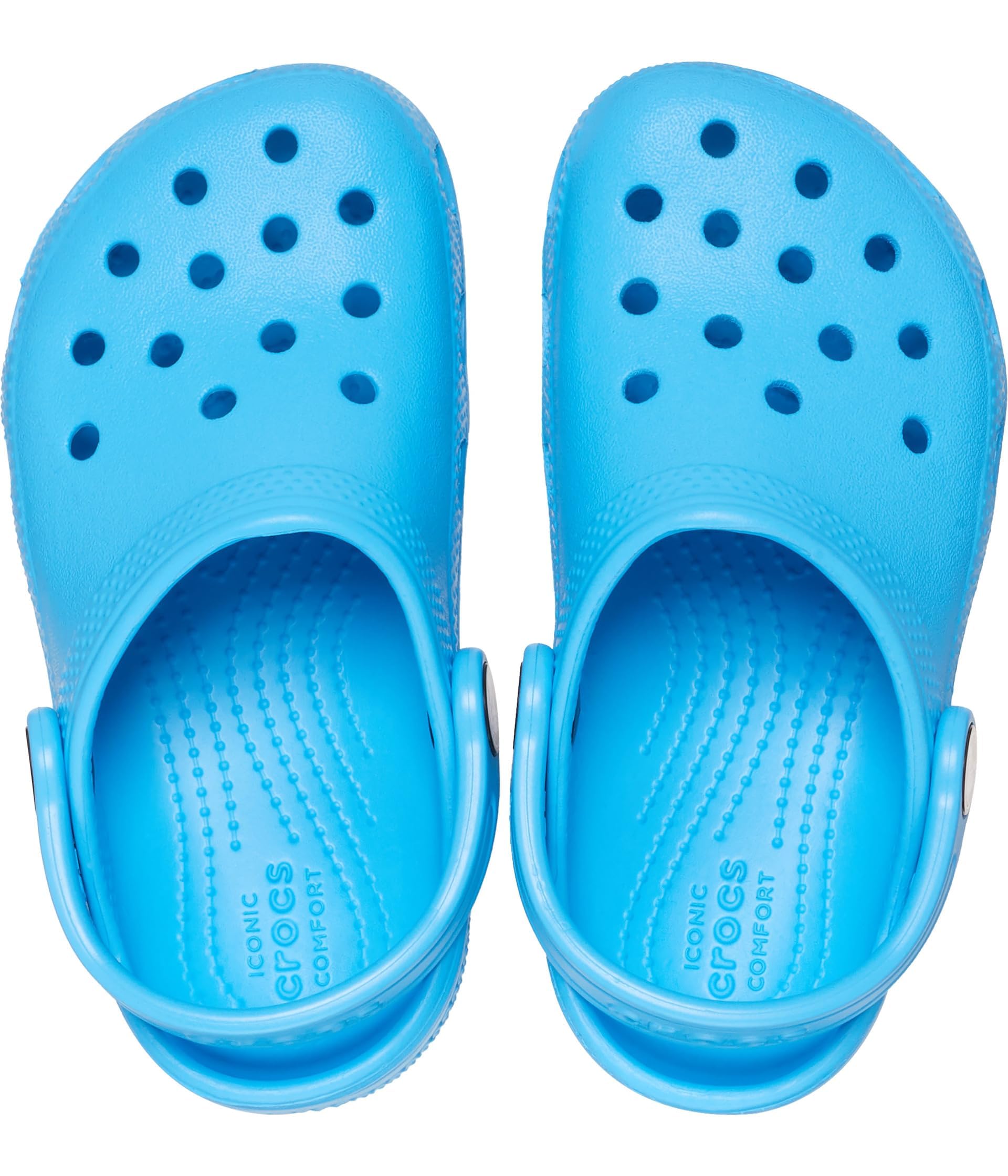 Description Start your little one out on the right foot with the Crocs Kids Classic Littles Clogs. EVA construction. Slip-on design. Pivoting heel straps for a more secure fit. Iconic Crocs Comfort: Lightweight. Flexible. 360-degree comfort. Non-marking outsole. Find Your Size: We recommend sizing up (e.g. if you are a 7.5, size up to an 8)