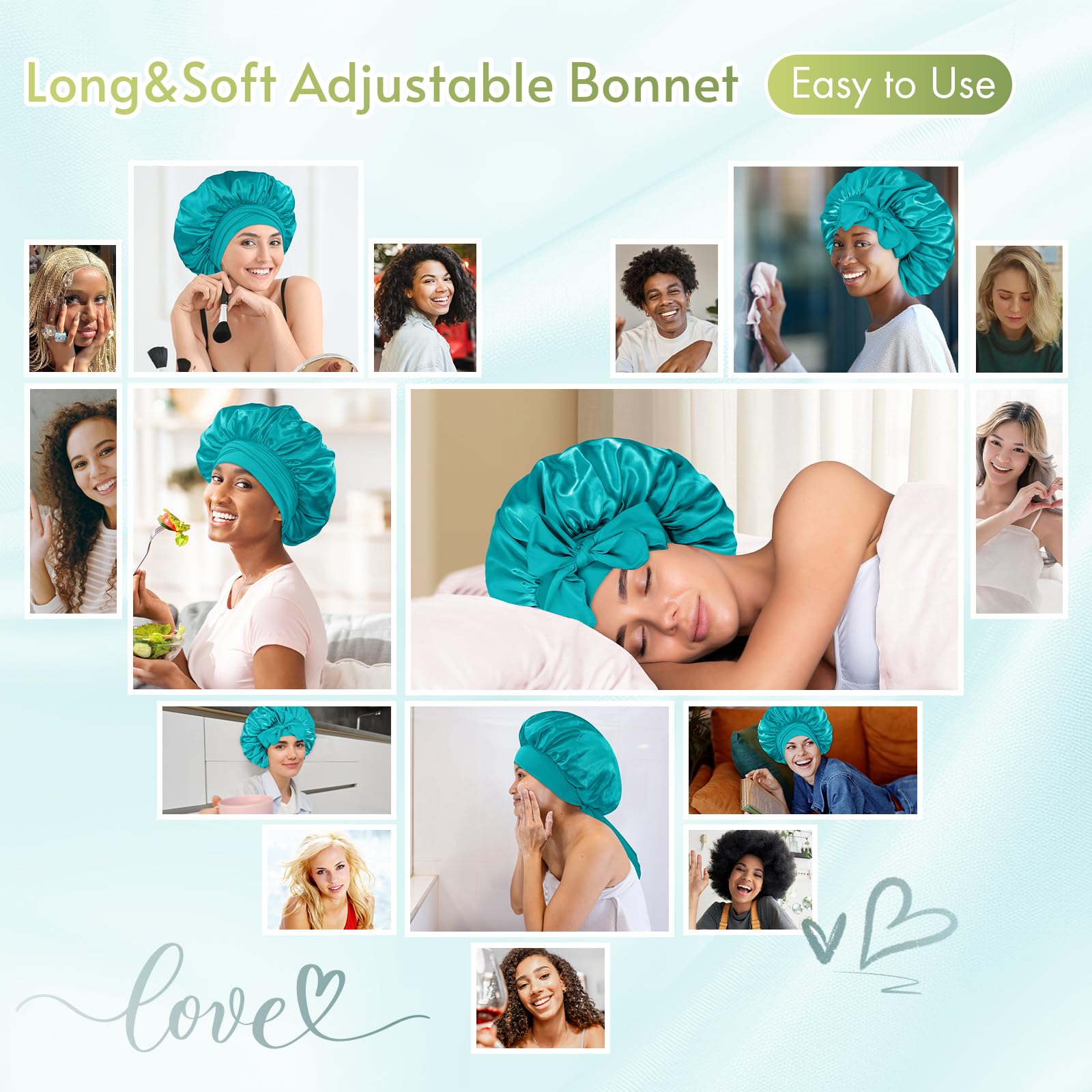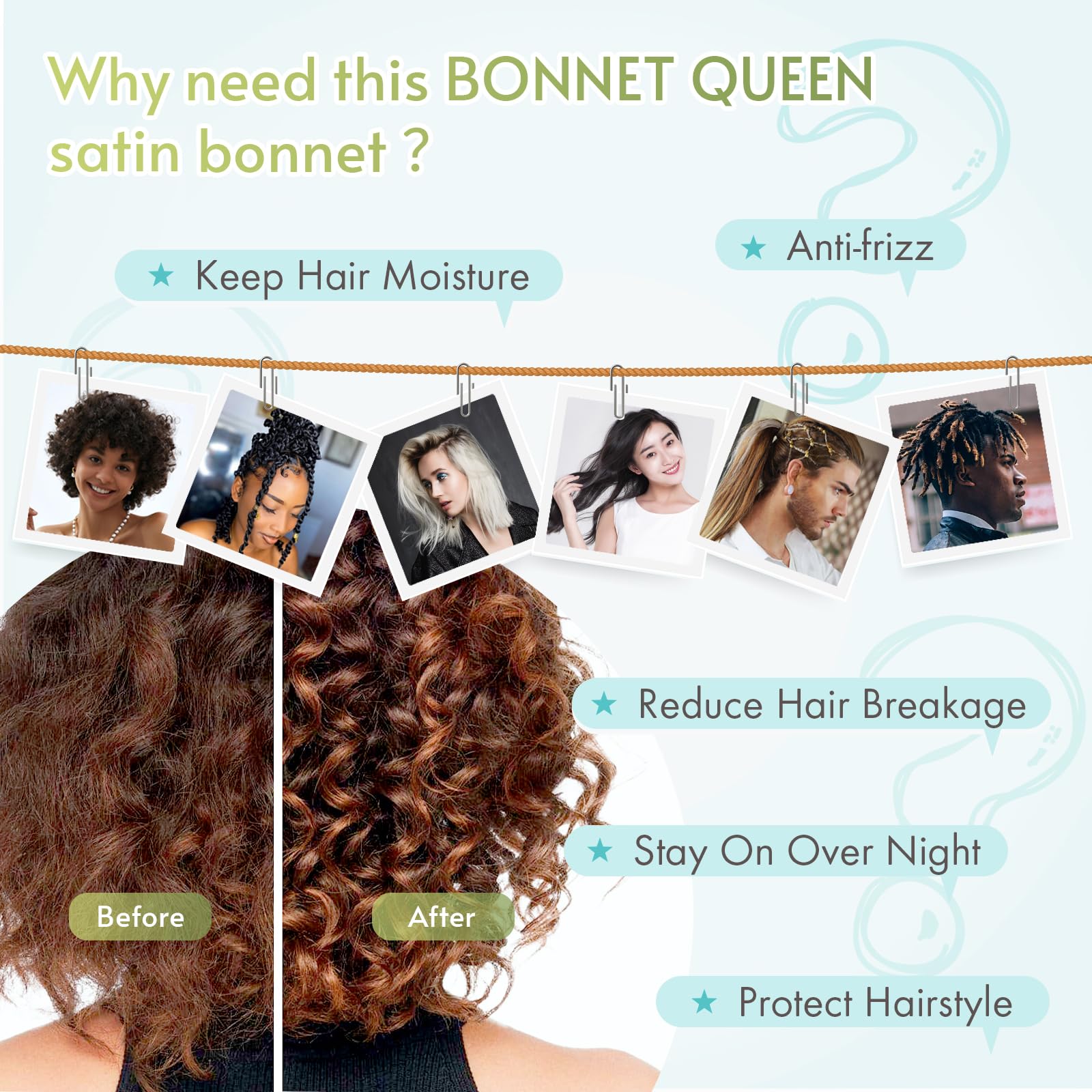 Quality material: Bonnet part is made of good texture silky satin, which is breathable and smoothy, and can keep hair moisture too. Long band is made of stretchy spandex material, comparing common elastic band Bonnet, this Bonnet wouldnot make you feel tight and leave imprint on head, and much more cosy.