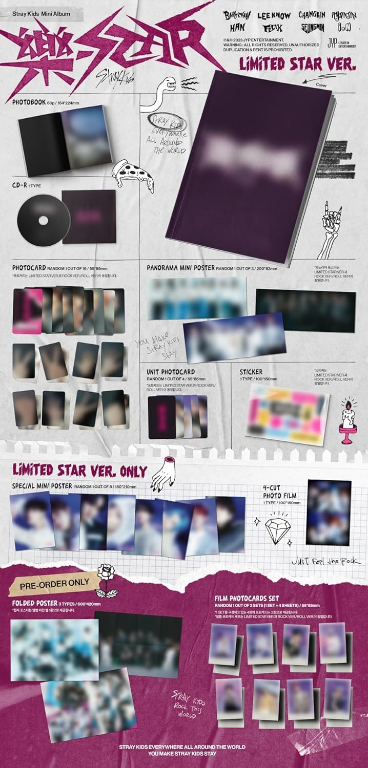 Dr. Sayzer Stray Kids Album 樂-STAR Rock Star (Limited Version) 8th Mini Album with Pre-Order Benefit (1x Folded Poster & 4x Film Photocards), JYPK1719-1