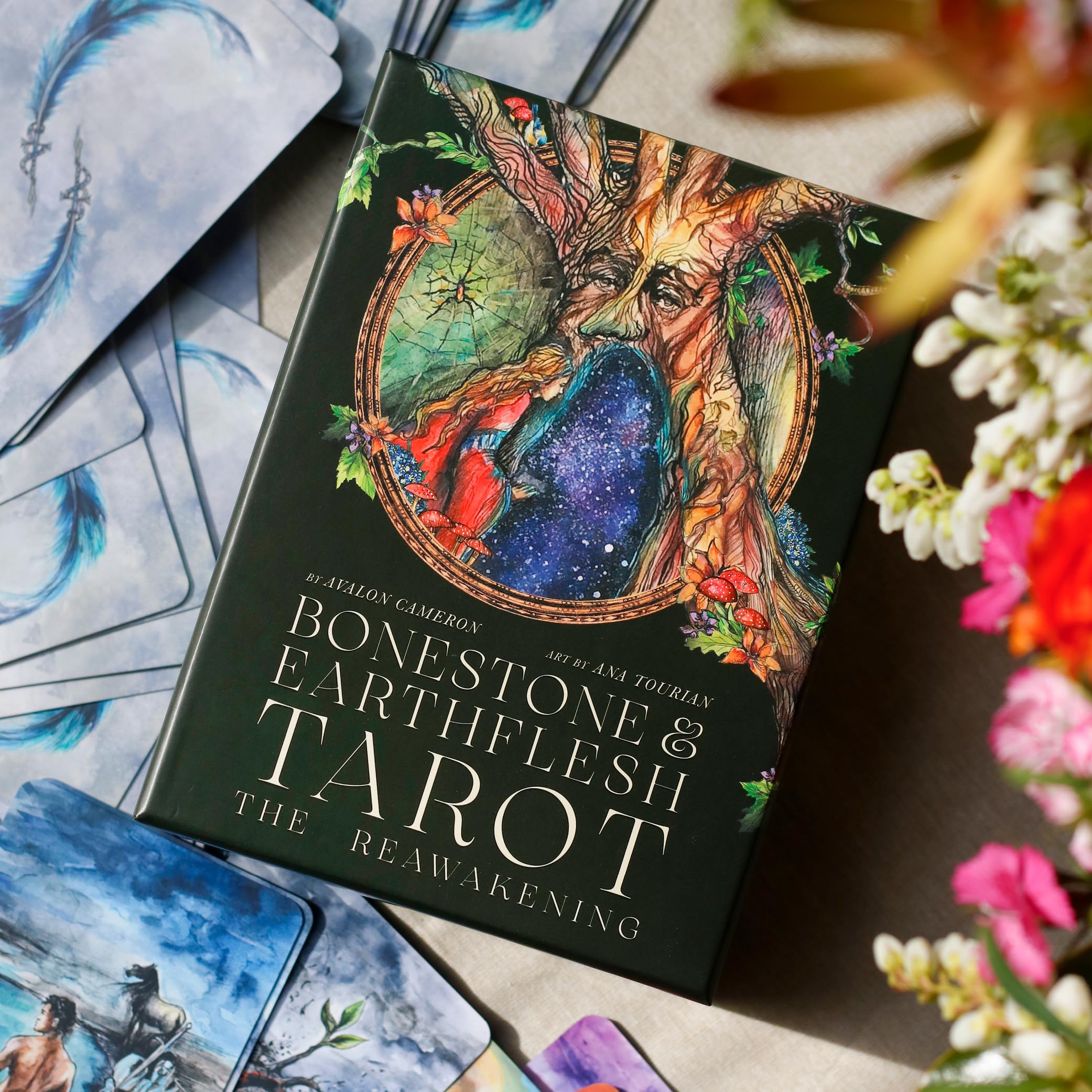 This new edition of the international bestseller by Avalon Cameron and Ana Tourian is an invitation to explore, remember, and weave your own path of self-discovery. Welcome to the world of Bonestone and Earthflesh, where myth and mysticism intertwine. This 79-card tarot deck is a journey through sacred landscapes and enduring narratives, where the hero, the villain, the lover, and the seer all leave their mark. Each card carries the voice of land spirits, protective deities, and the wisdom of those who came before.