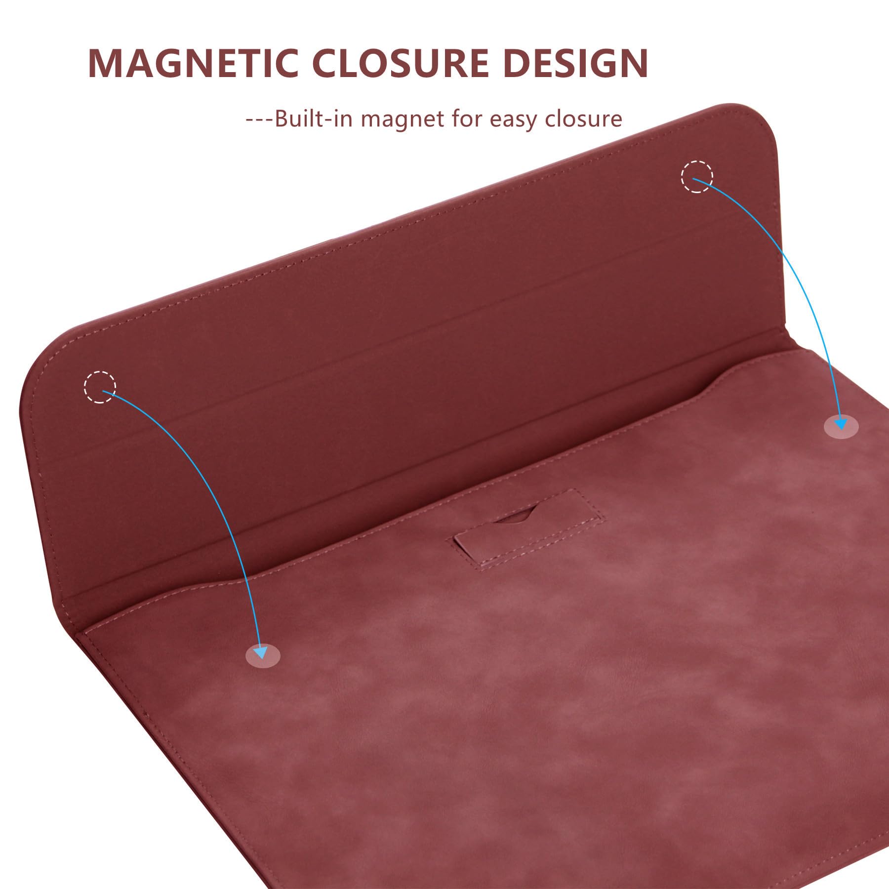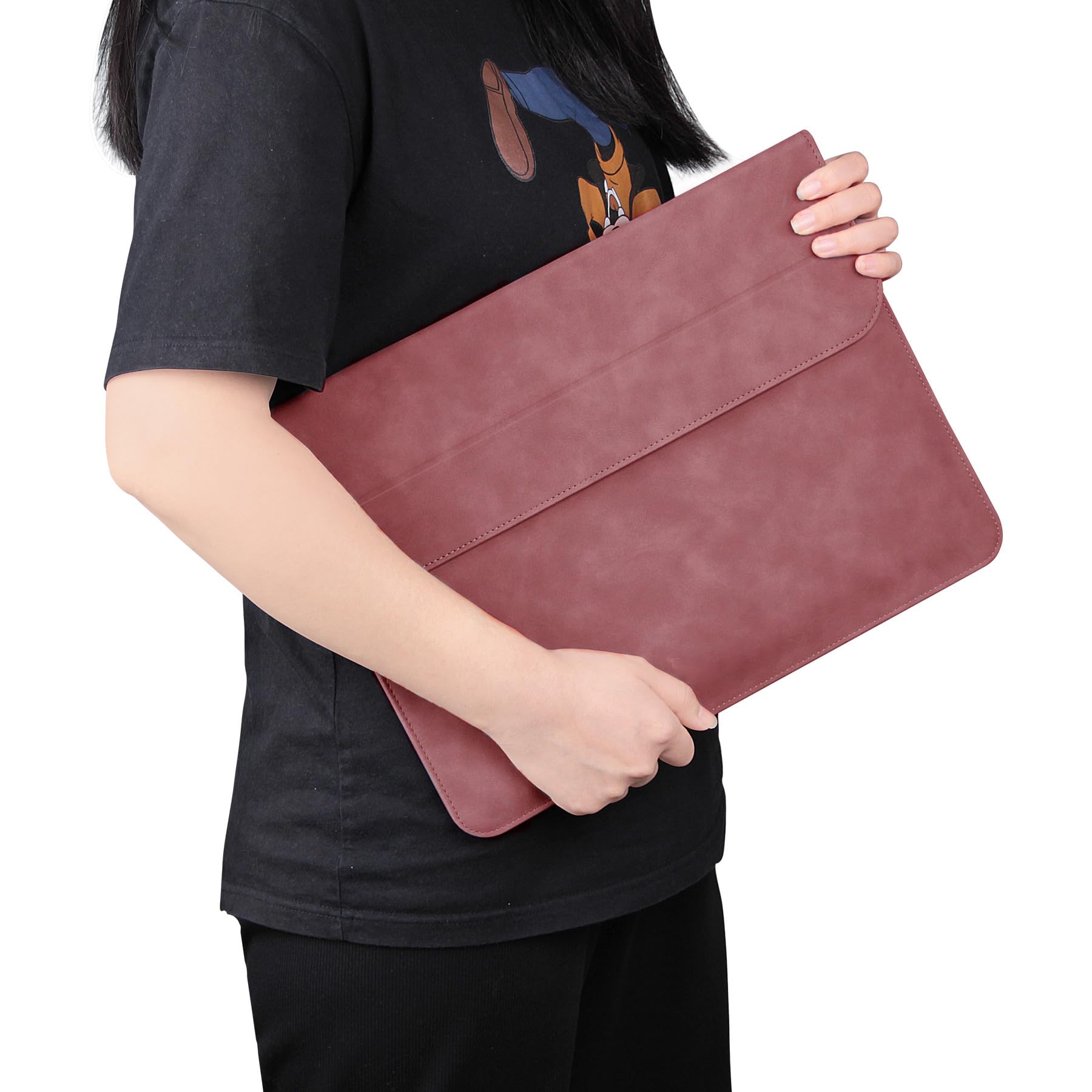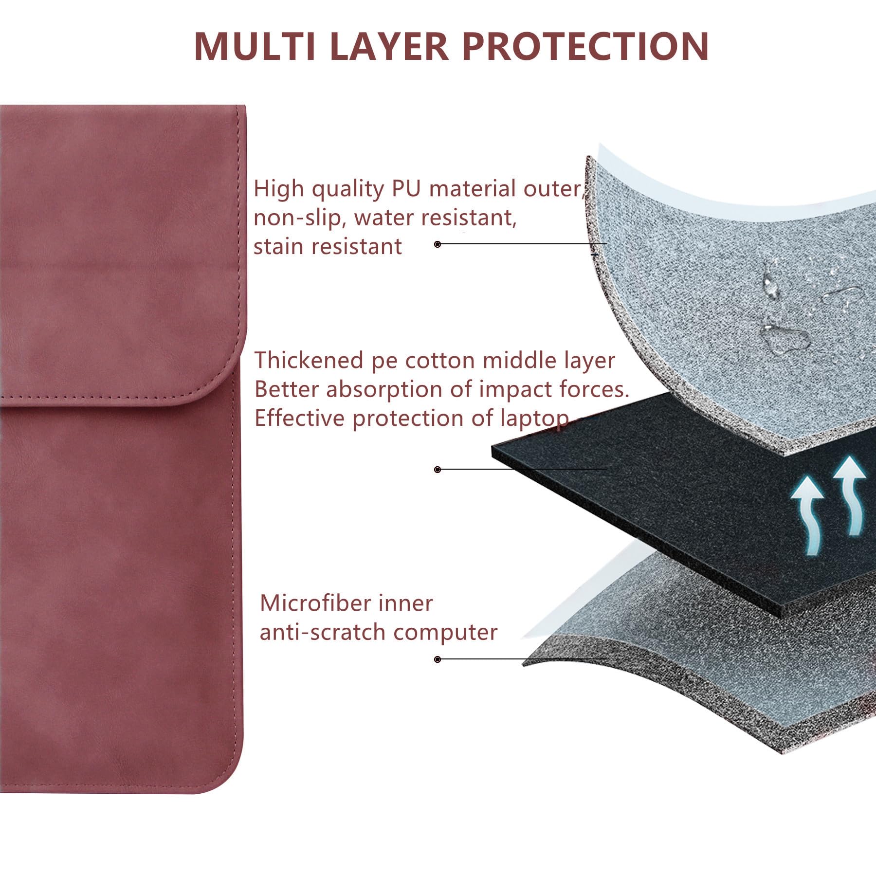 Note: ★The megoo laptop case is slim, if your laptop with some thick and hard shell case, it's won't fit. 2in1 15" laptop sleeve, the cover also can be used as laptop stand. It's convenient for office, travel and carrying. Premium PU leather exterior, microfiber interior can protect your devices from dirt, scratch, dust, oil, shocks, and etc., reduce damages caused by accidentally thing. And without worrying about the devices being rubbed against or damaged by any other object within the sleeve. Slim and lightweight, the laptop case is easily to carry or inside another bag, backpack and suitcase. External dimensions: 398*285*5mm (15.7*11.2*0.2inch); Weight: 320g(0.7lb); Compatible with most 15~16inches tablet laptop devices: → Microsoft Surface Laptop 7 (2024) 15", Surface Laptop 6/5/4/3 15.6", Surface Book 3/2 15.6"; → MacBook Air 15.3" / MacBook Pro 16.2" ; → Samsung Galaxy Book 15 / Book Pro 360 15 / Book2 Pro 360 / Book Flex / Book Odysse 15.6" ; → Dell XPS 15 / Inspiron / G15 / Vostro / Latitude / Precision 15.6" ; → Lenovo YOGA Pro16s 16"/IdeaPad 15 15.6" ; → 15"~ 16" chromebook tablet laptop computer.