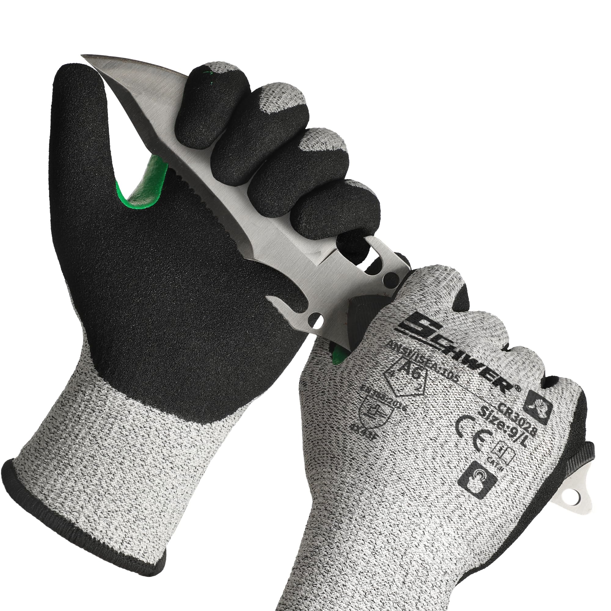 Superior Abrasion and Durability—With a sandy nitrile coating, these work gloves provide outstanding abrasion resistance and grip, even in wet and greasy conditions. With reinforced thumb crotches, they offer durability ten times stronger than ordinary cut-resistant gloves.