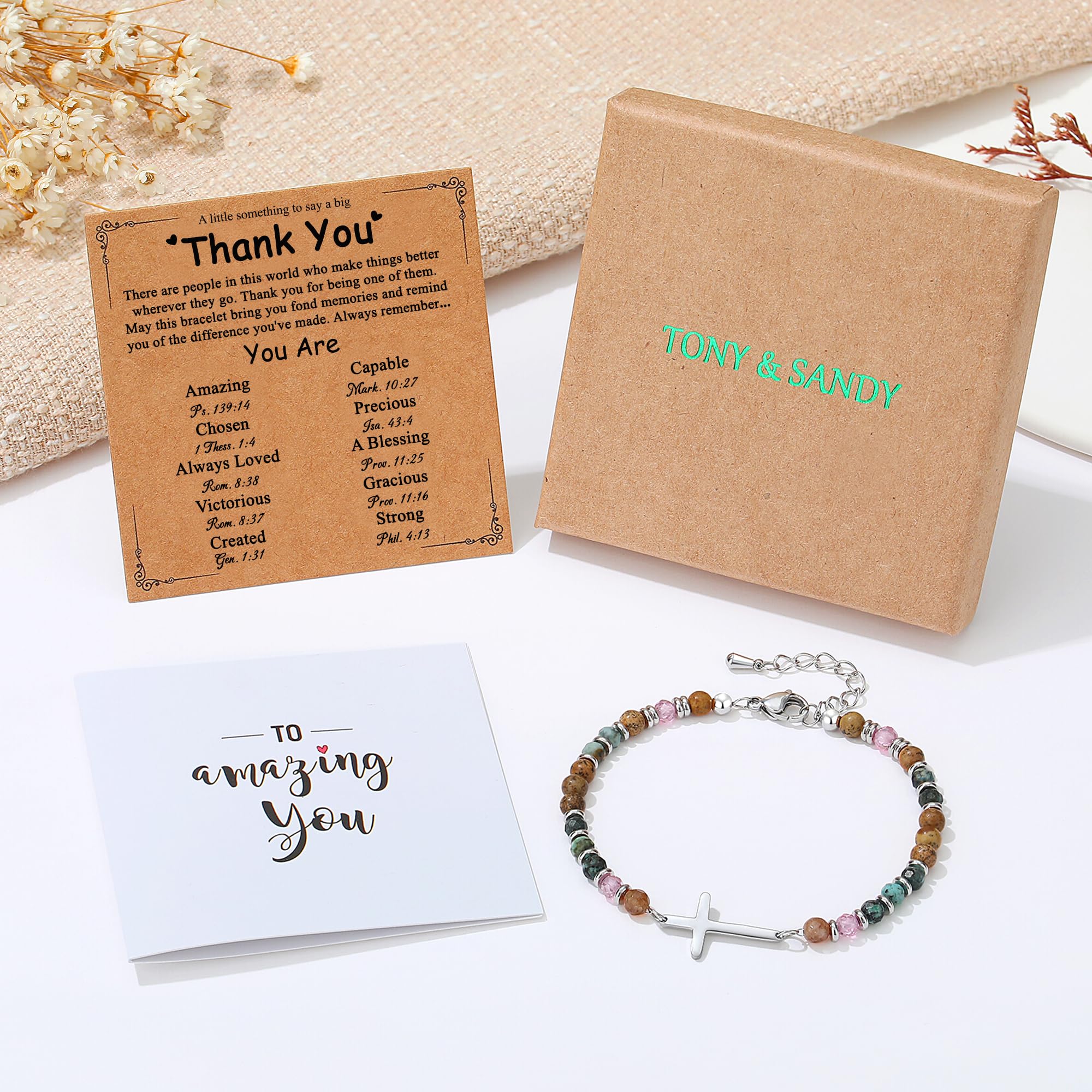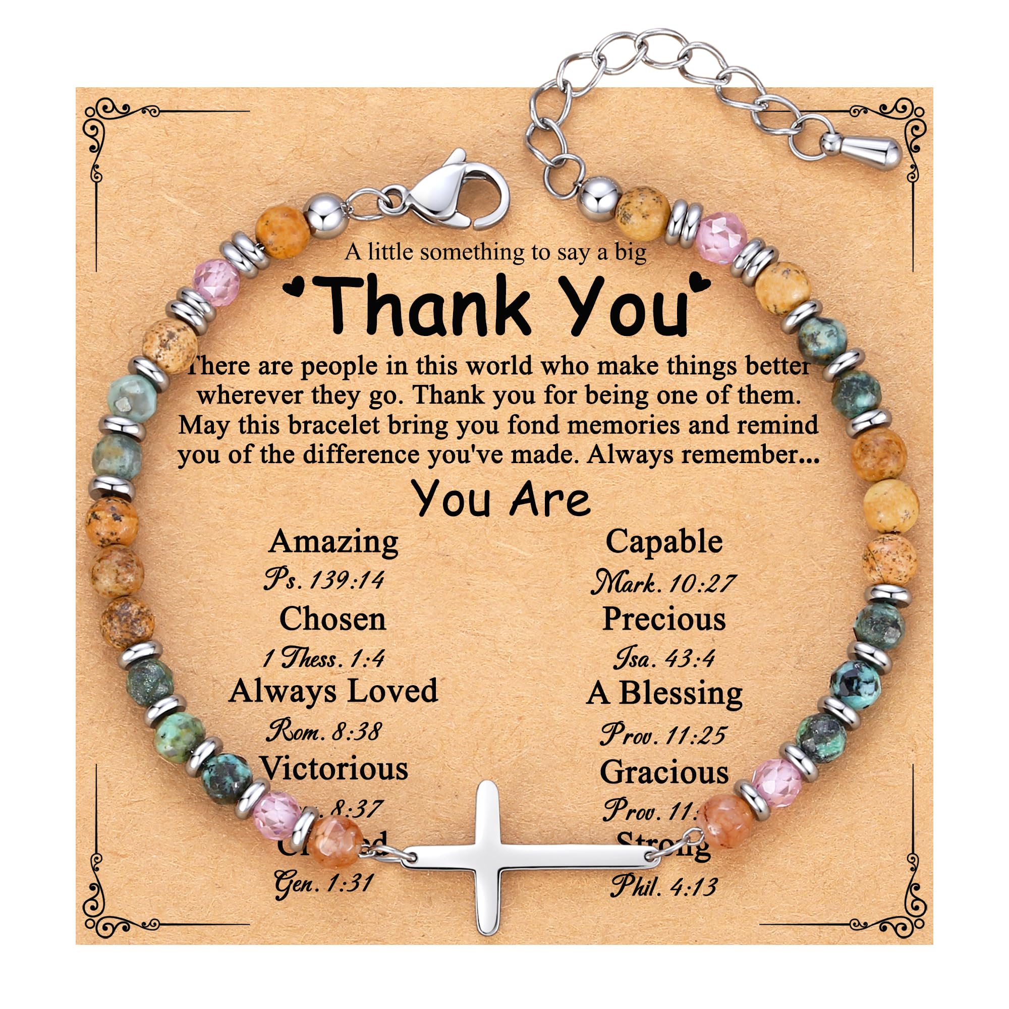 【 Unique Gifts for Women 】Designed to inspire faith and confidence, each bracelet is accompanied by a beautiful card featuring powerful affirmations like "You Are Amazing (Ps. 139:14)", "Chosen (1 Thess. 1:4)", and "Victorious (Phil. 4:13)".It's more than jewelry; it's a wearable daily blessing and a source of spiritual encouragement, reminding her of God's love and her inherent strength with every wear.
