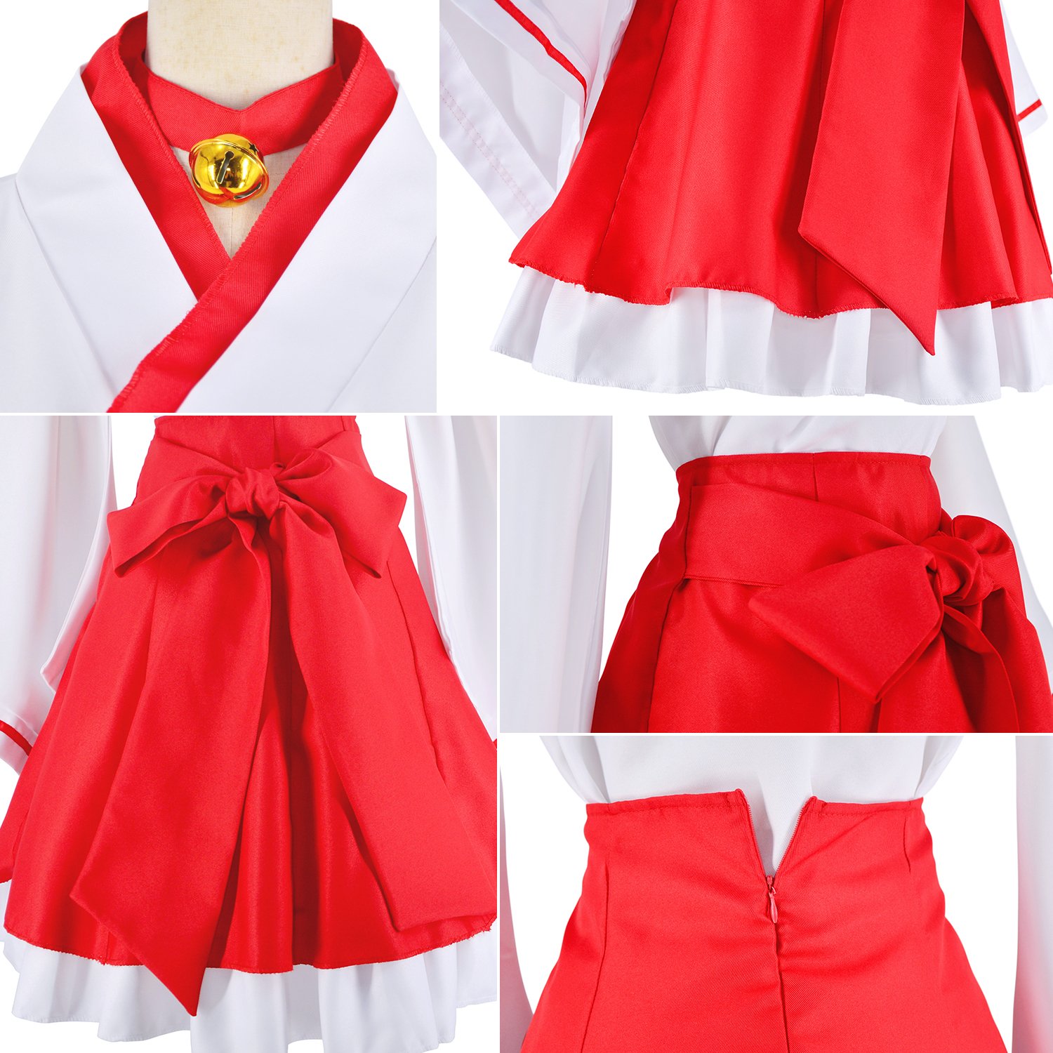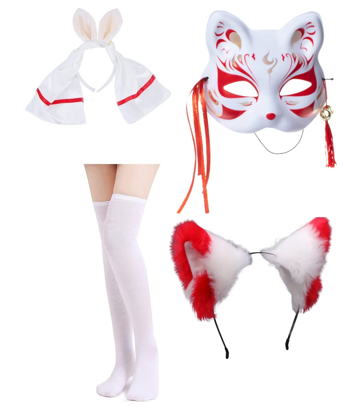 Made of cotton blend, polyester, Kimono top *1,Skirt with belt*1,Fox costume hairband *1, Necktie with bell*1 , Fox mask *1 , Over the knee high white sock*1