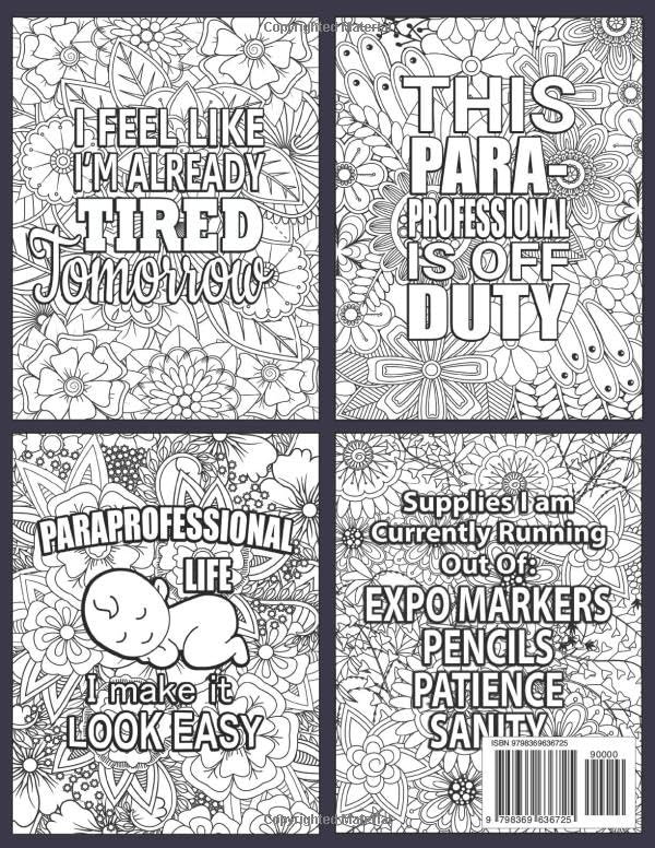 Funny & Hilarious GIFT Idea for Paraprofessionals - This coloring book is a collection of humorous and relatable Paraprofessional sayings & quotes with nice designs, mandalas, and flowers, etc. It will help you to relieve stress & lift your mood. What's Inside? 8.5"x11" Softcover Book. Single-sided coloring pages that allow for the pages to be removed Suitable for felt tips, markers, gel pens, coloring pencils, etc Relatable phrases with beautiful designs. A funny gift idea for Paraprofessionals. Click 'Add to Cart' to Buy Your Copy Now!