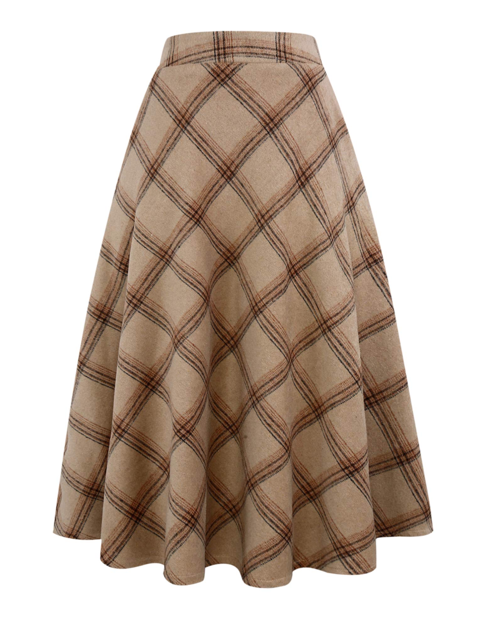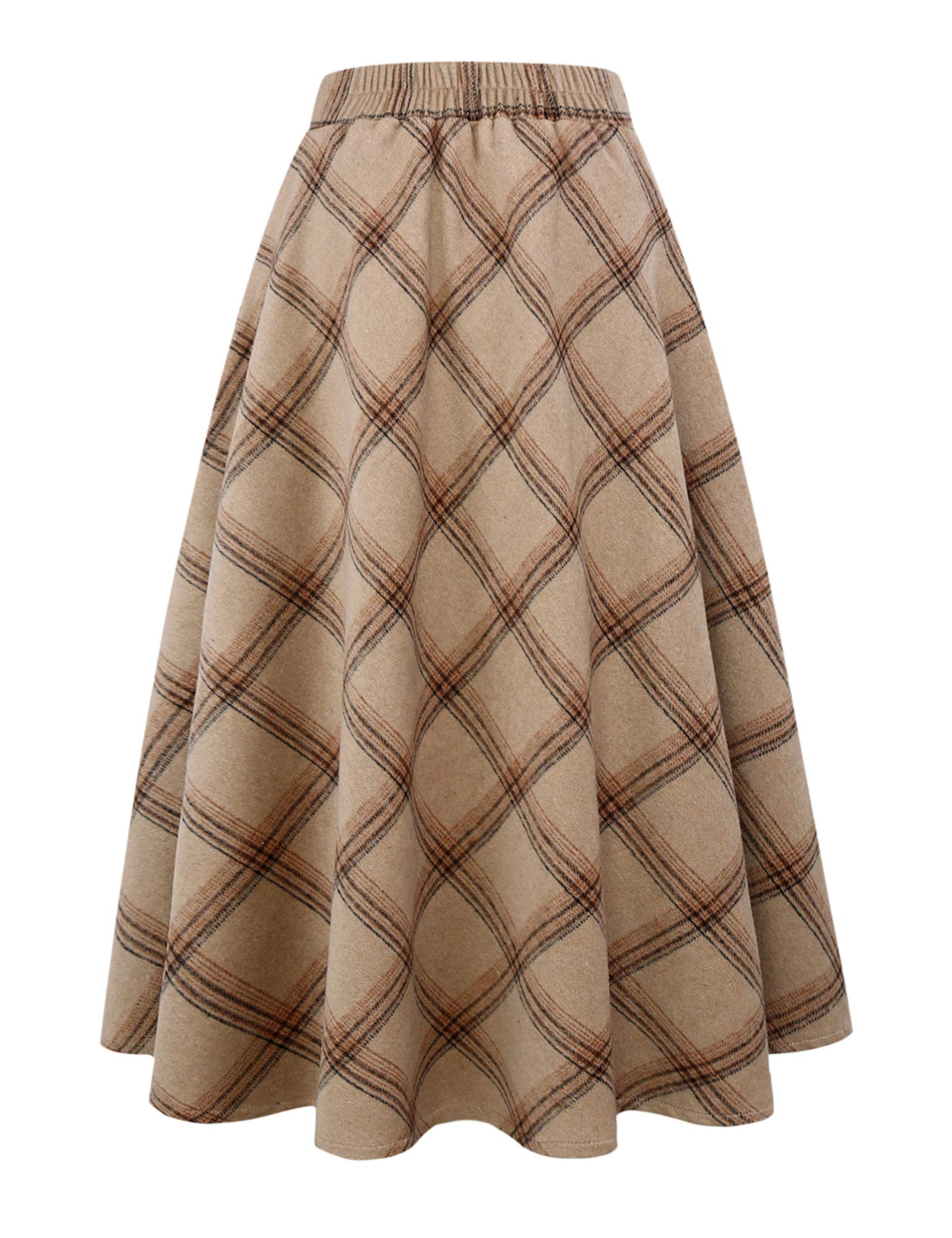 IDEALSANXUN women’s fall/winter wool high waist A-line plaid tartan maxi long skirt.