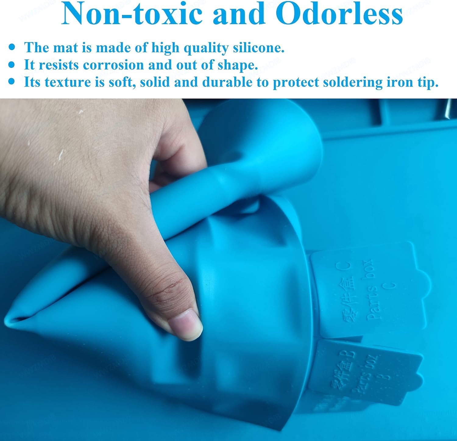 🎯【Non-toxic and Odorless】: The mat is made of high quality silicone. It resists corrosion and out of shape. Its texture is soft, solid and durable to protect soldering iron tip.