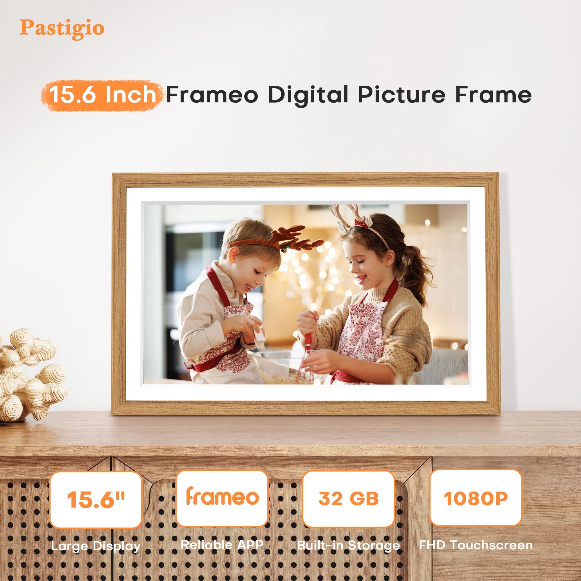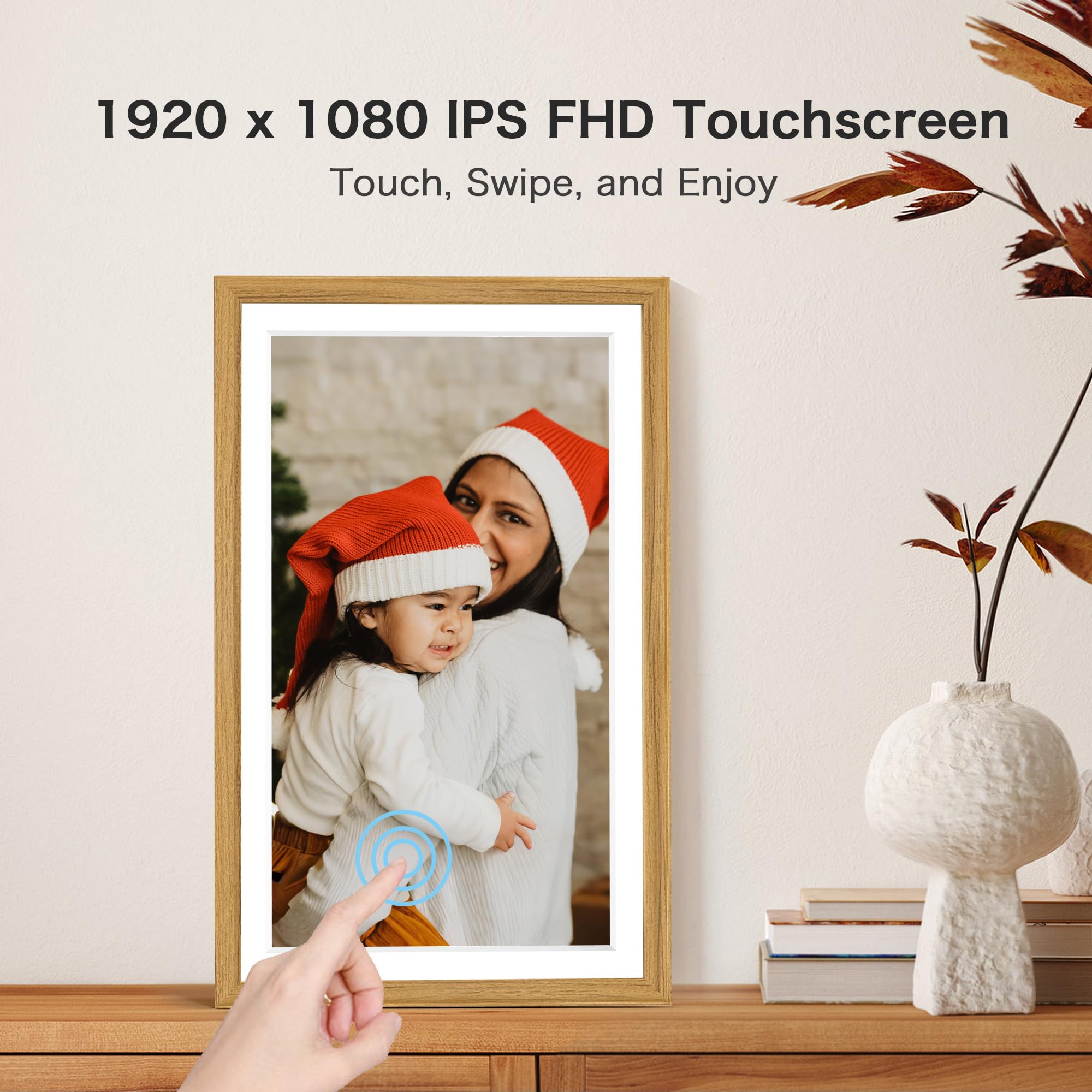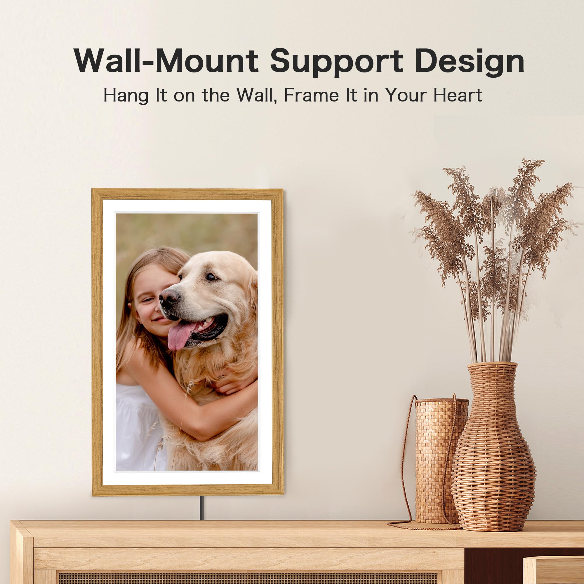 FHD IPS Touch Screen Display; Pastigio wifi picture frame equipped with a 15.6 inch digital panel with FHD 1920x1080P for vivid color and exquisite details. Border design with neutral tone complements a wide range of interior styles. Through this rotating picture frame, You can see the furry hair of your lovely pet, see the youthful freckles on smiley faces, see how every teeny tiny detail builds up your colorful life. Multiple image formats are supported, JPG/JPEG/BMP/PNG, and video format by MP4