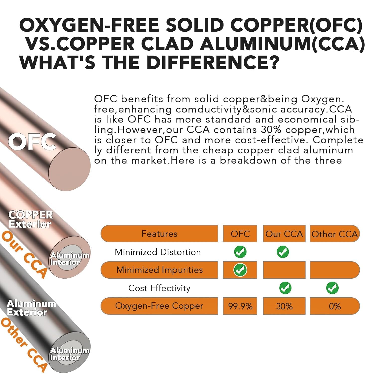 PREMIUM COPPER-CLAD ALUMINUM (CCA) WIRE CONTAINS 30% COPPER- Ensuring robust power transfer in a lightweight design. TopstrongGear CCA with 30% OFC wires maintain maximum flexibility while providing the strength needed for efficient power transfer at an affordable price point. For specific power demands, explore our range of premium Oxygen-Free Pure Copper (OFC) wiring alternatives.