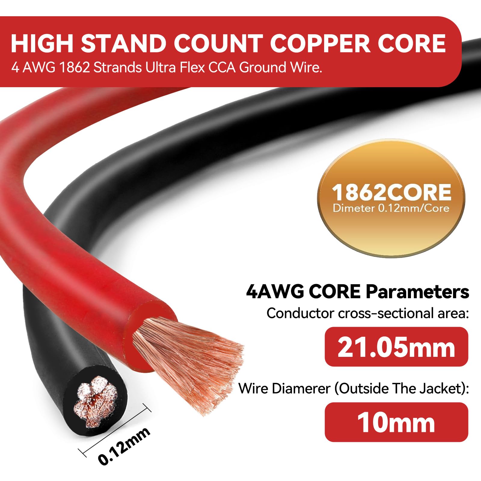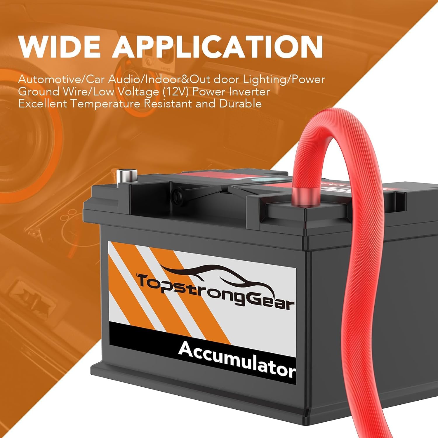 SOFT-TOUCH PVC JACKET MAXIMIZING FLEXIBILITY AND DURABILITY- TopstrongGear true spec 4 gauge wires come with a rugged PVC jacket, offering both flexibility and durability for challenging placements. Its soft-touch design suits electrical and auto repair installations, providing indoor use versatility with built-in resilience to impacts and diverse conditions. Extreme Heat Tested