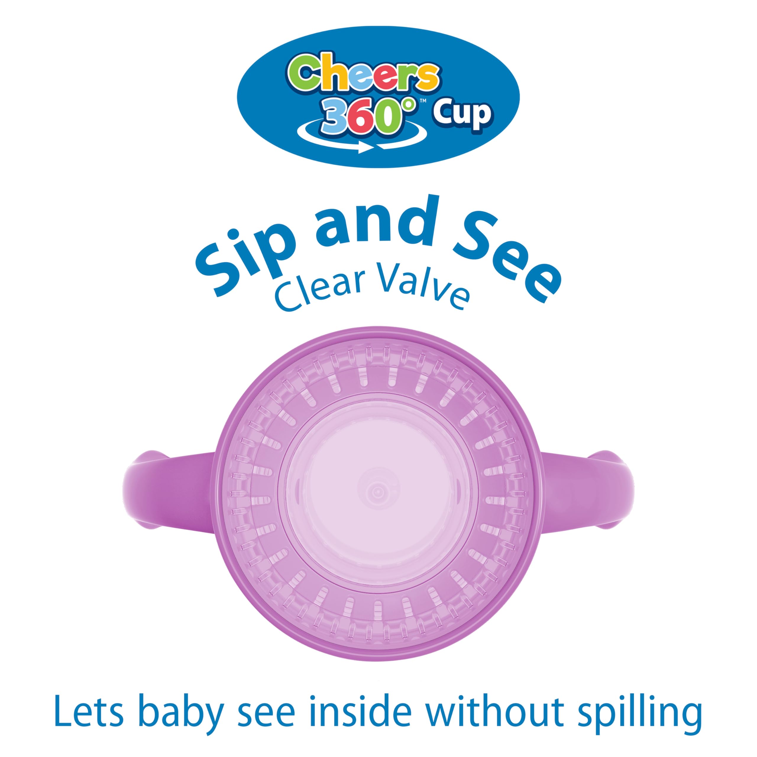 360 SIPPY CUP. Teach baby to drink like a big kid with the Cheers360 Spoutless lid with handles. The leak-free design lets baby drink from any edge without spilling.