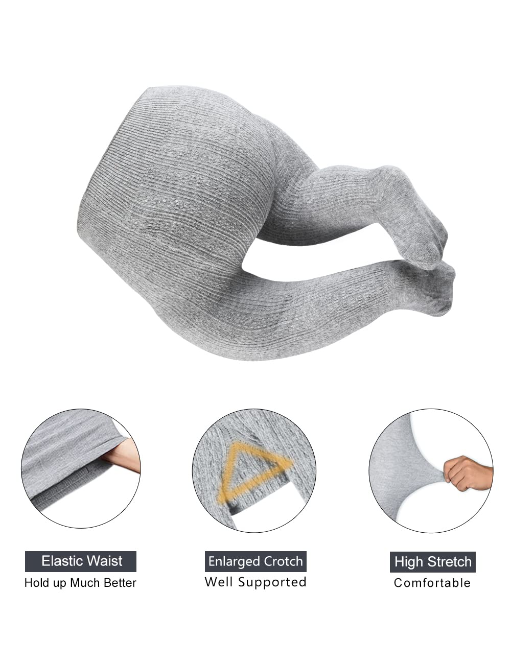 FIT PERFECT - The cable knit tights for baby girls are to do better shape and follow fashion. Machine-made ribbed waistband of the tights is to prevent from constricting babies' belly. Ultra big gusset is to make sure baby to be more comfortable and relaxable. And Seamless stitching socks of newborn infant tights is to protect baby's feet from rubbing