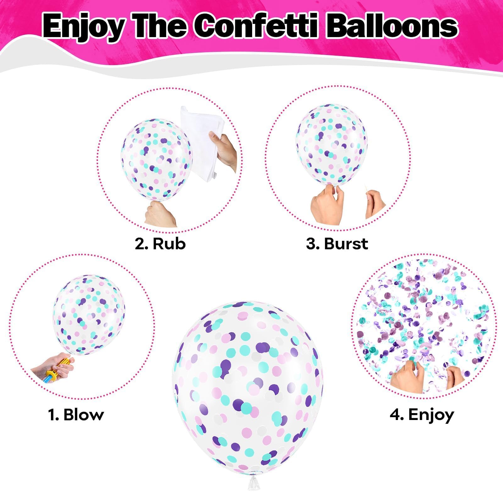🎈EASY TO USE - We provide ribbon and confetti balloons to assist you in assembling the balloons. Simply inflate the balloons with air, helium or oxygen, and wipe the confetti balloons with a dry towel or hair to make the confetti stick inside the balloons. However, when filled with helium, since the confetti is heavier than helium, to prevent this situation where the confetti may sink to the bottom of the balloon, you can spray some water inside the balloon before inflating it.