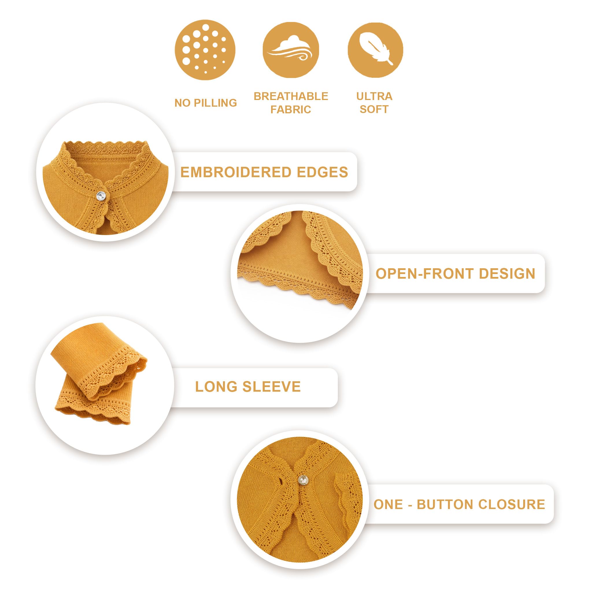 Lightweight beautiful little shrug is classy, elegant, soft, and comfortable.