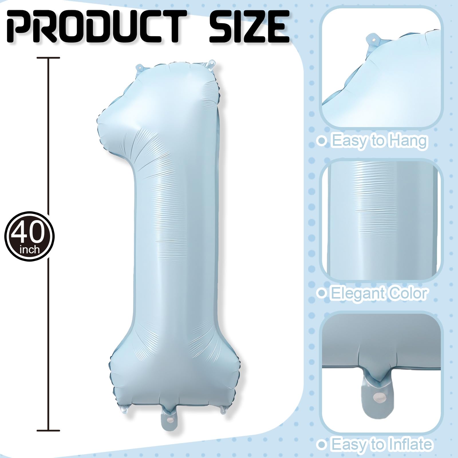 【Versatile Decoration for Various Events】: Ideal for 1st birthday party, weddings, anniversary, graduations, baby shower, New Year's Eve parties, housewarming party, retirement celebrations, holiday party, gender reveal party and other celebrations. This pastel sky blue number one balloon can be paired with other numbers to form the perfect combination for any milestone celebration, such as a first birthday, sweet 16, or a retirement party.