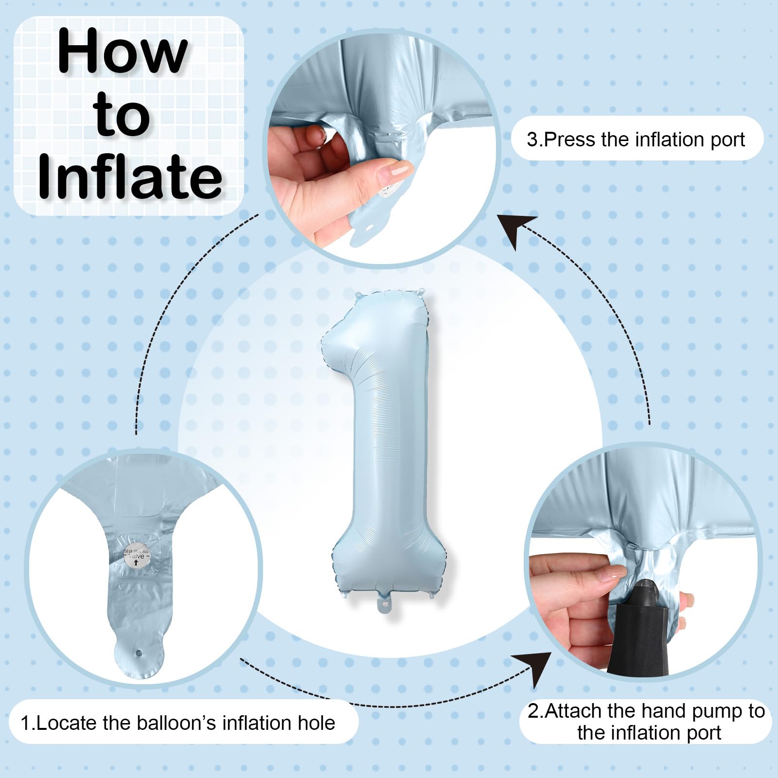 【Easy Inflation & Setup】: The light blue giant number balloon is designed for quick and easy inflation with either helium or air. It features a self inflating valve for convenient use, allowing you to quickly set up and enjoy the decorations without any hassle. For optimal use, inflate the balloon to 90% capacity only to prevent over-inflation and bursting.