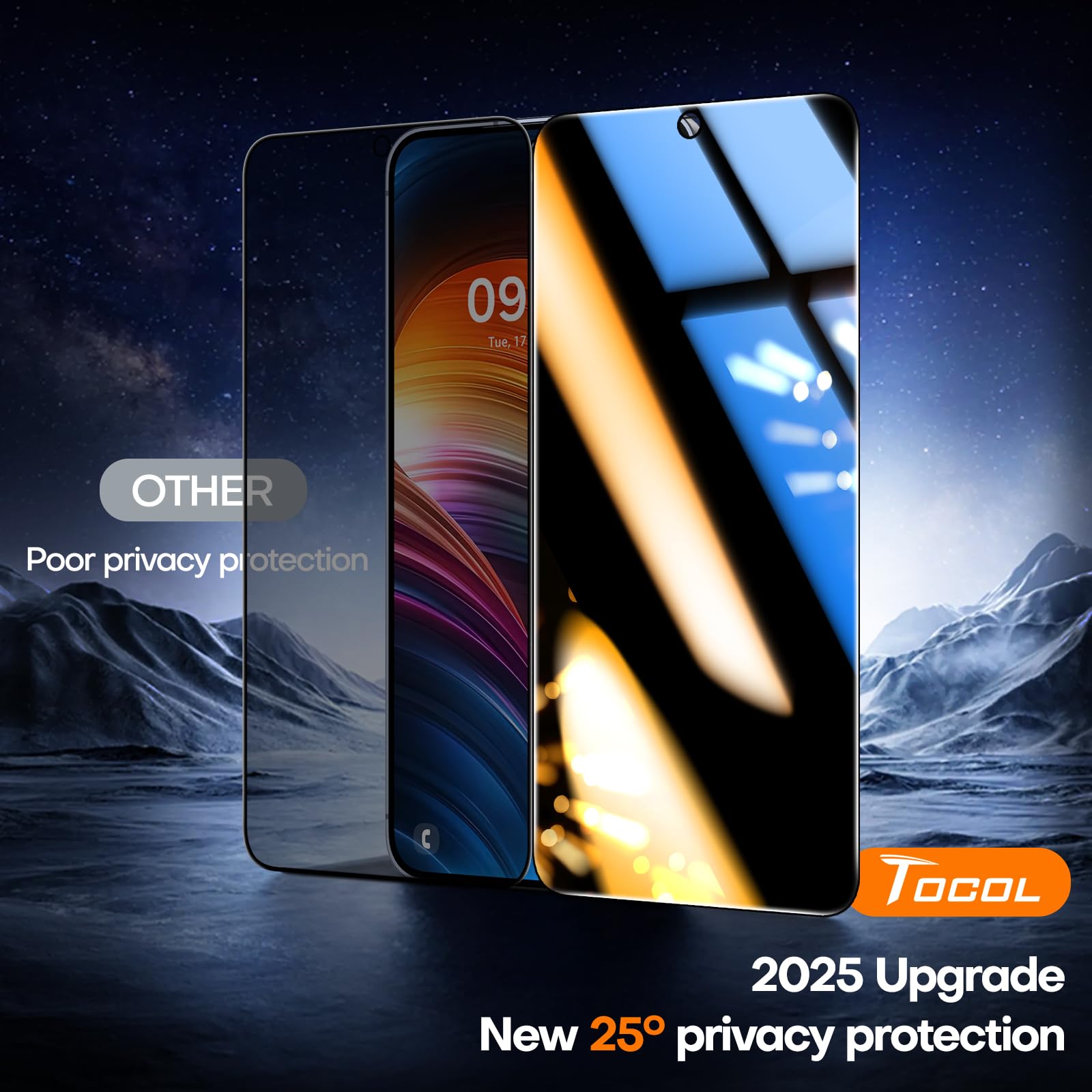 TOCOL for Samsung Galaxy S25 Privacy Screen Protector 9H Hardness Military Grade Shatterproof HD Tempered Glass 2 Pack