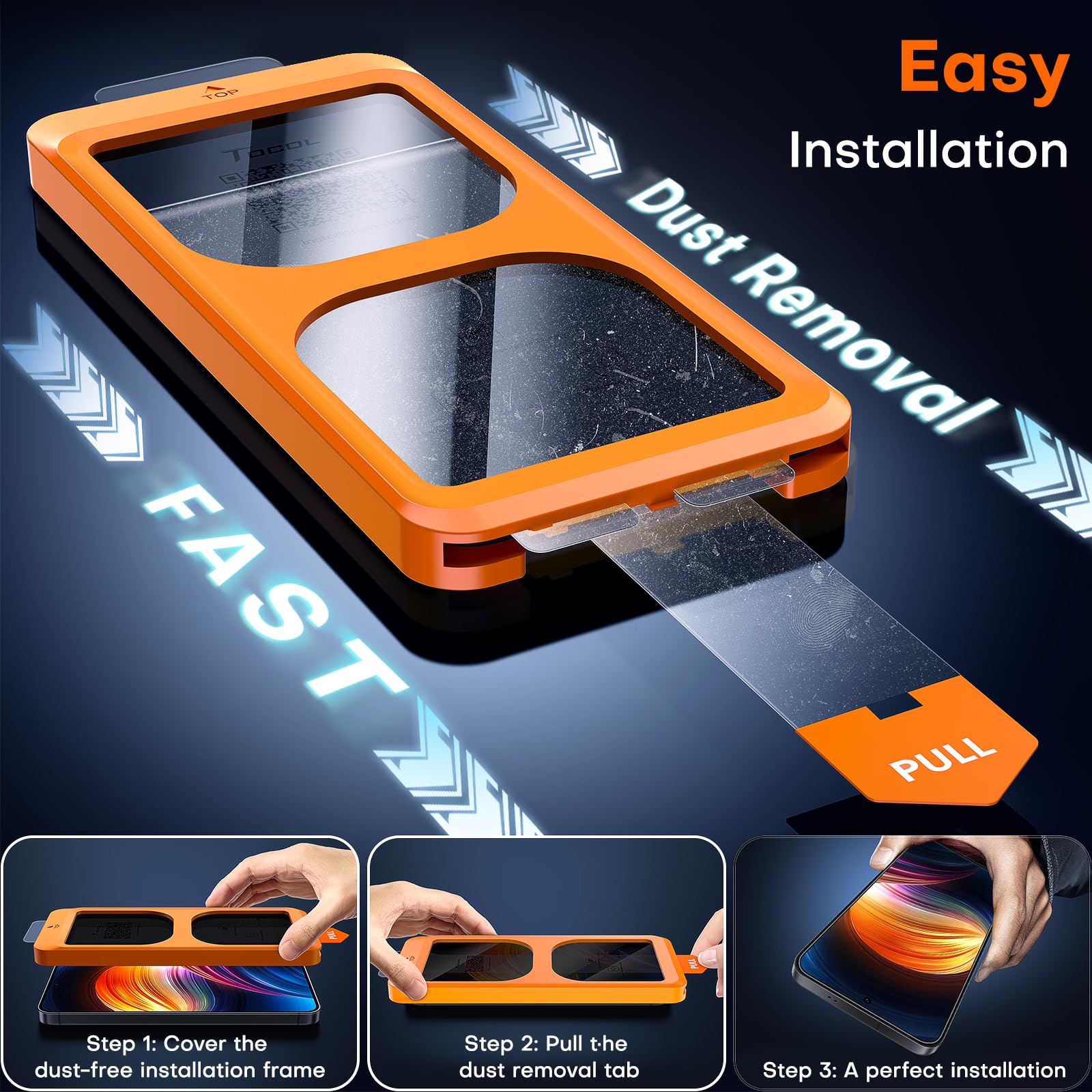 【Revolutionary Innovative Auto Installation】This is the easiest method for installing Galaxy S25 screen protector available on the market to date. It features innovative automatic positioning, dust removal, and adsorption technology, making the installation a breeze within seconds. Simply align the frame on your phone, press and pull. With a success rate as high as 99.99%