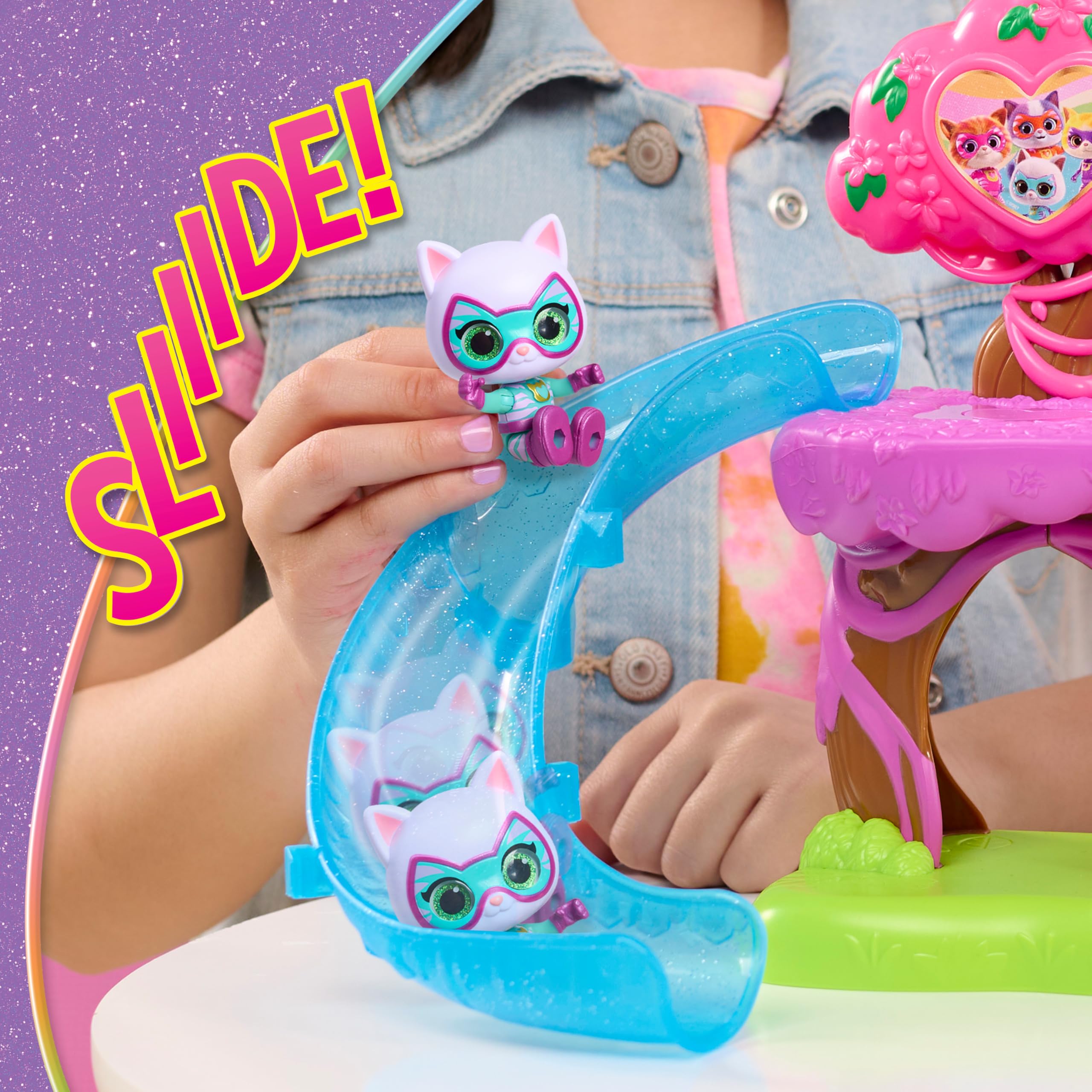 Su-Purr Wild Playset: This cat-shaped playset looks just like the show! Itβs packed with fun features, like a secret hideaway, elevator to the lookout tower, swinging basket, slide, and more.