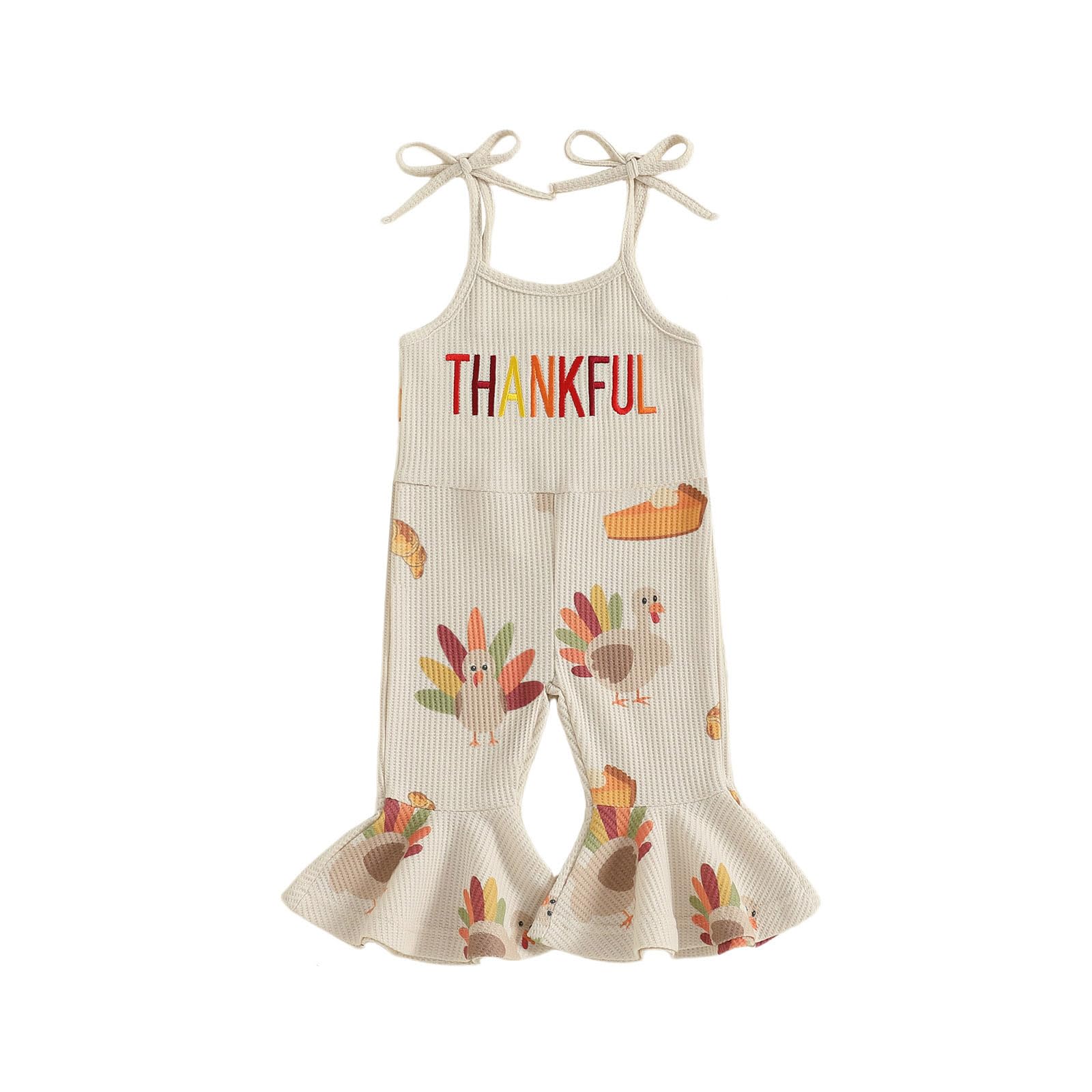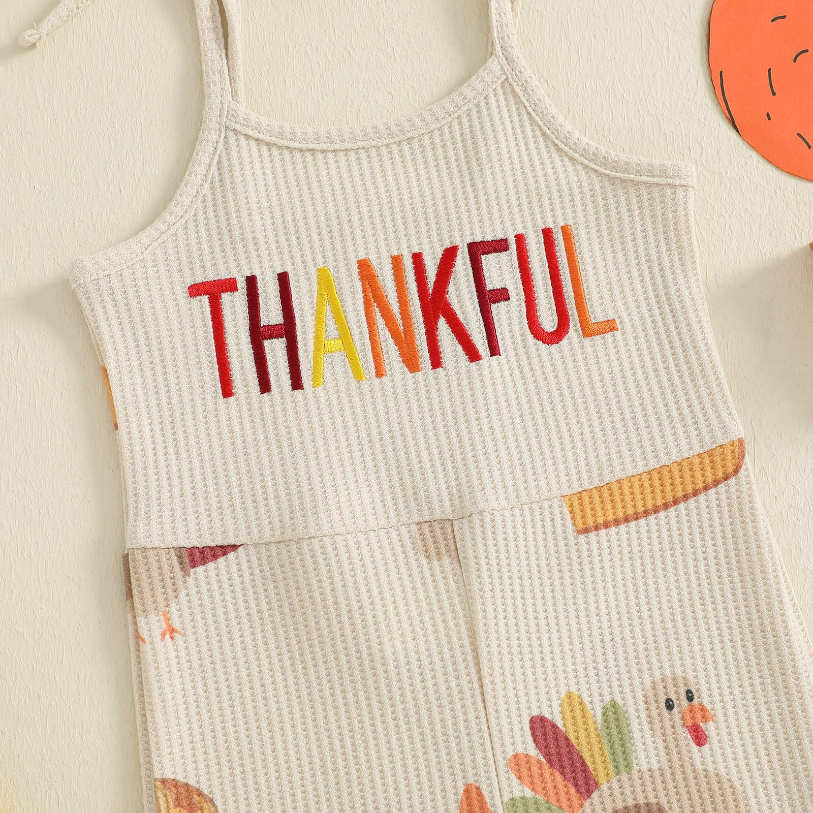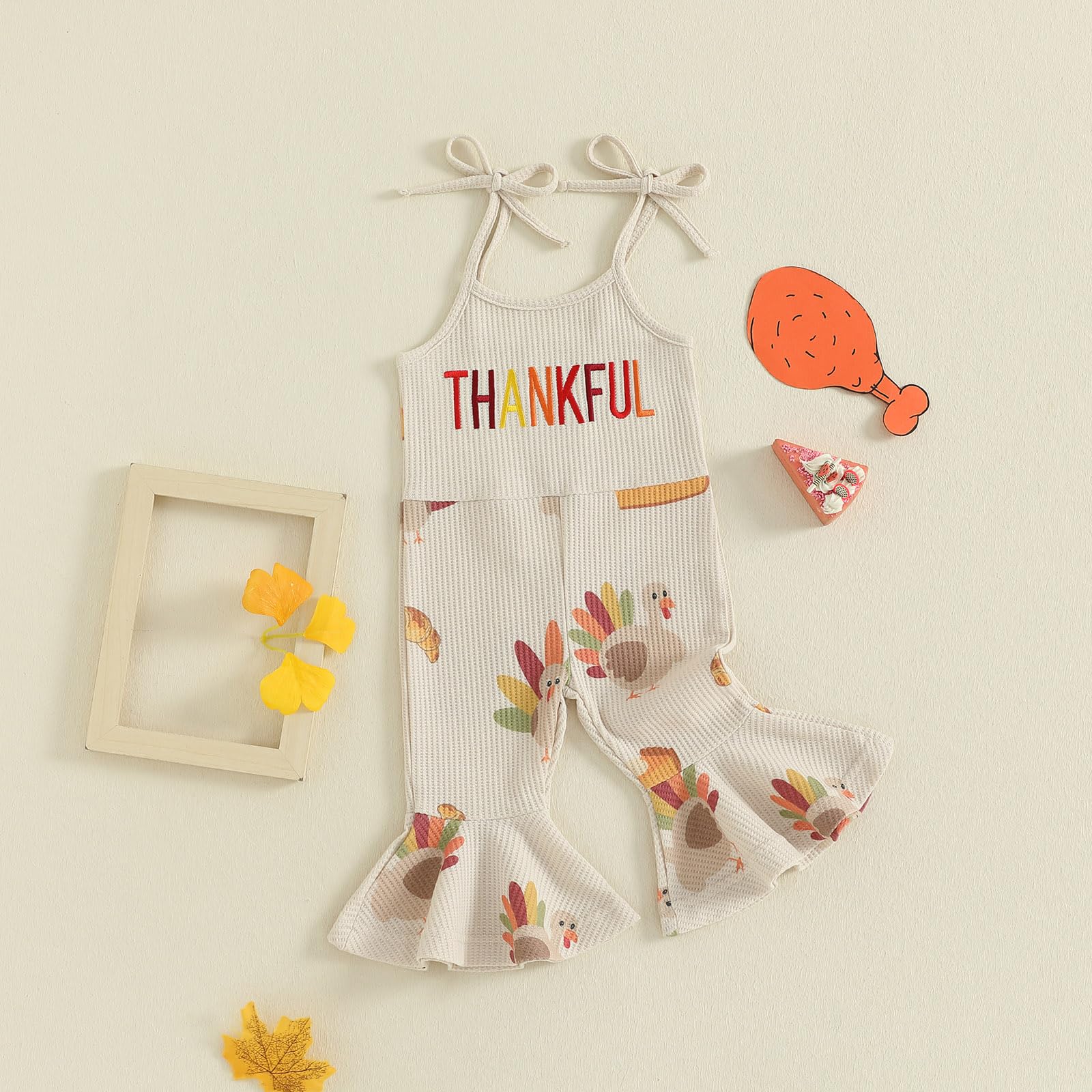 CASUAL DESIGN: Halloween baby girl clothes,thanksgiving baby girl outfit; Toddler girls overalls with pumpkin embroidery, turkey jumpsuit,striped print, cute bow, button straps, sleeveless, flared legs; Delicate design details make your little one cute and charming