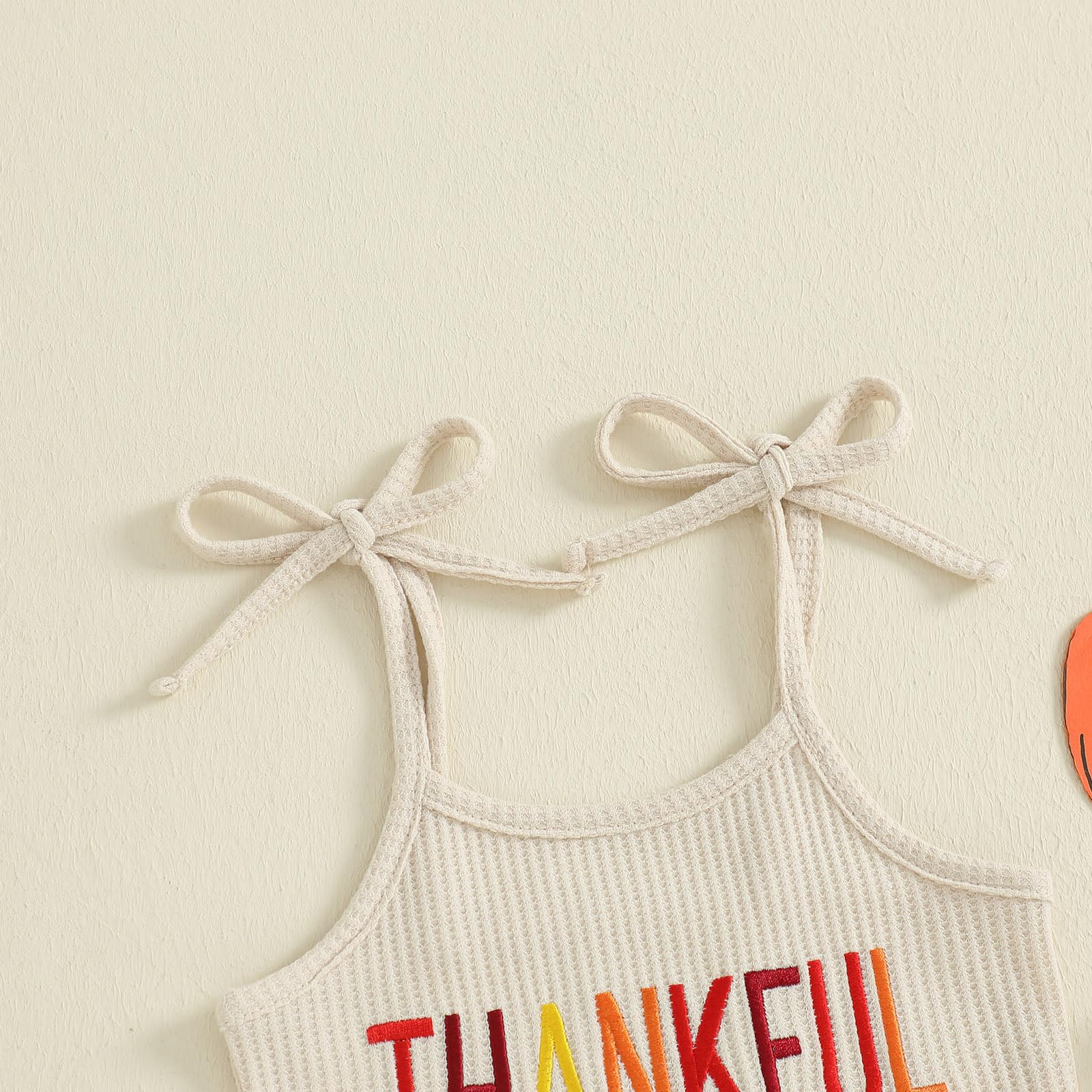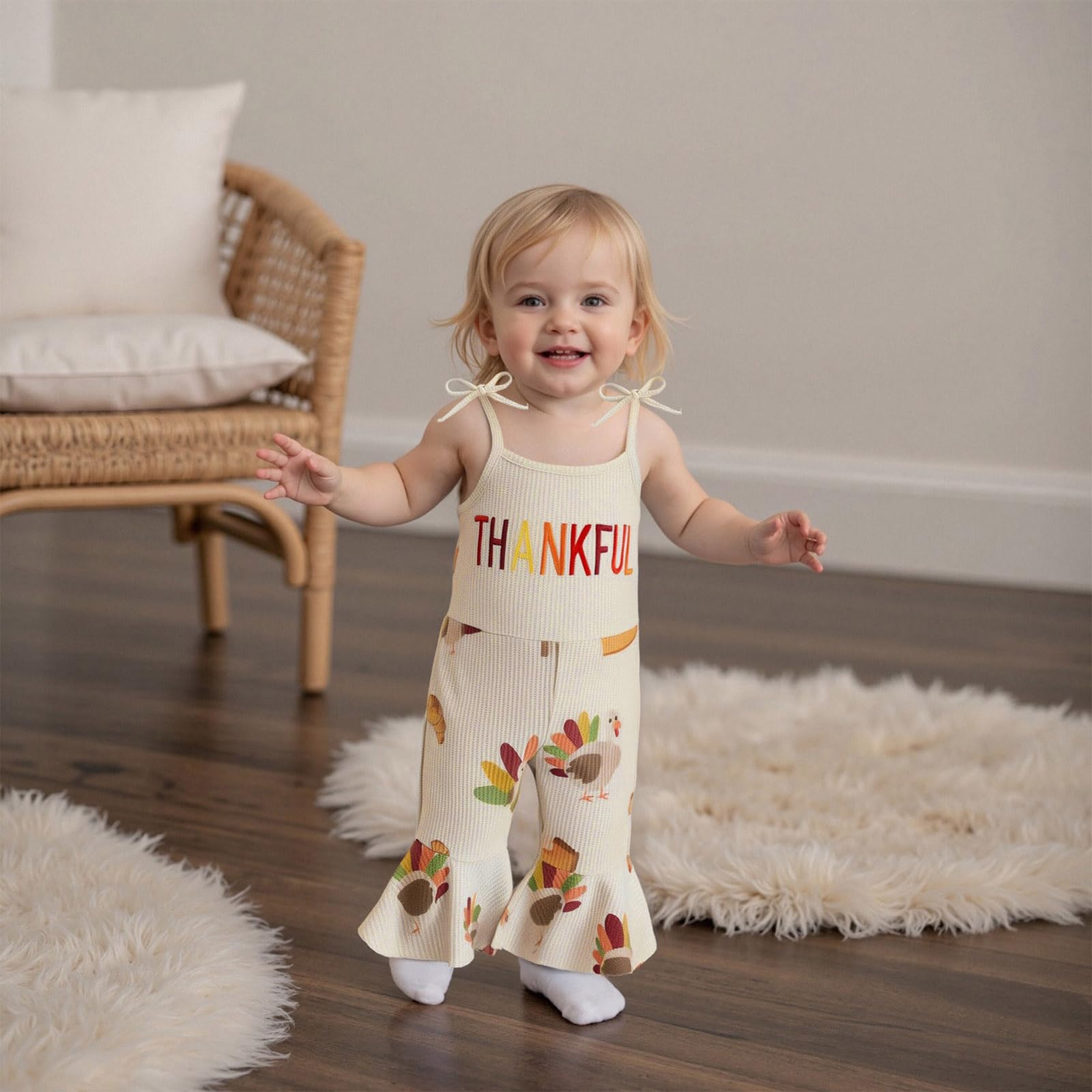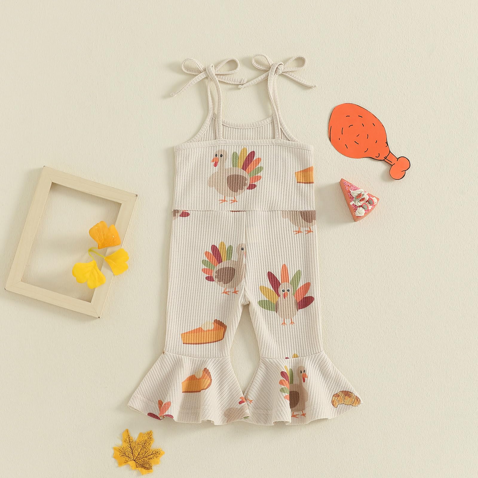 CASUAL DESIGN: Halloween baby girl clothes,thanksgiving baby girl outfit; Toddler girls overalls with pumpkin embroidery, turkey jumpsuit,striped print, cute bow, button straps, sleeveless, flared legs; Delicate design details make your little one cute and charming