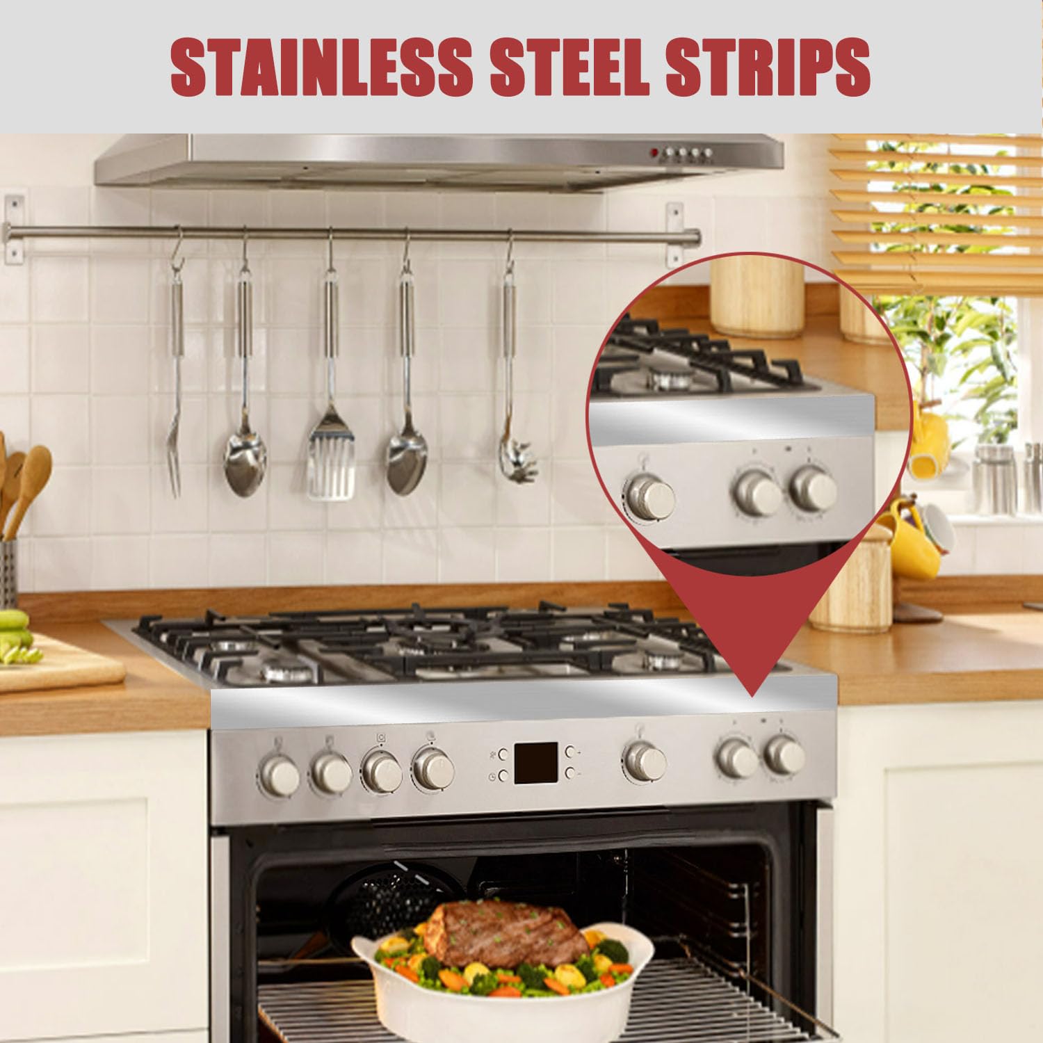 ✔ UNIVERSAL FIT AND MULTIPURPOSE DESIGN: The 304 brushed stainless steel strips are ideal for bridging gaps between your wall and range, built-in microwave, or oven. Its 30" length is compatible with most top appliance brands, providing a custom, built-in appearance for your stainless steel appliances and cabinets. This self-adhesive strip ensures your kitchen looks seamless and professional.