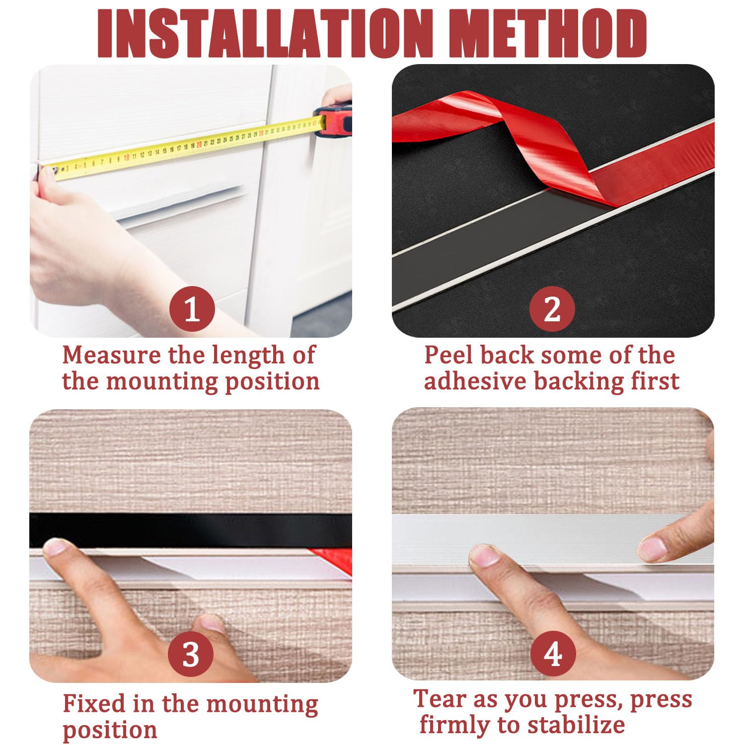 ✔ PEEL AND STICK: Featuring a self-adhesive design, these stainless steel trim strips make installation a breeze, taking just 10 seconds without the need for drilling. Prepare the surface, peel off the backing, position the stainless steel sheet metal strips, and press firmly. They adhere well to all smooth surfaces, offering high viscosity and long-lasting hold.