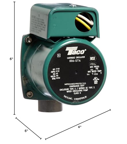Product Description Taco 1/40HP 115V Circulator Pump has a self-lubricating design which improves reliability by eliminating the need for a mechanical seal. The stainless steel construction of this circulator makes it the perfect match for applications where corrosion resistance is necessary. From the Manufacturer Taco 1/40HP 115V Circulator Pump has a self-lubricating design which improves reliability by eliminating the need for a mechanical seal. The stainless steel construction of this circulator makes it the perfect match for applications where corrosion resistance is necessary.
