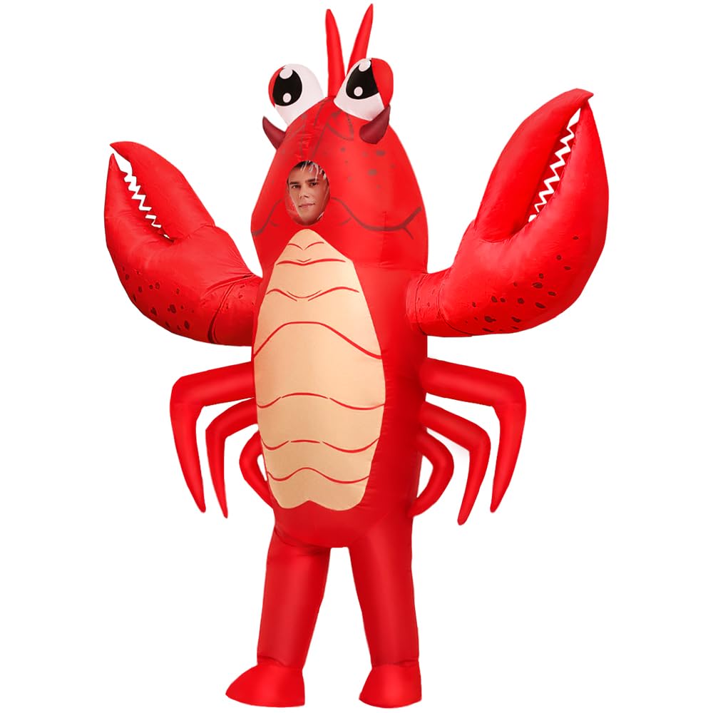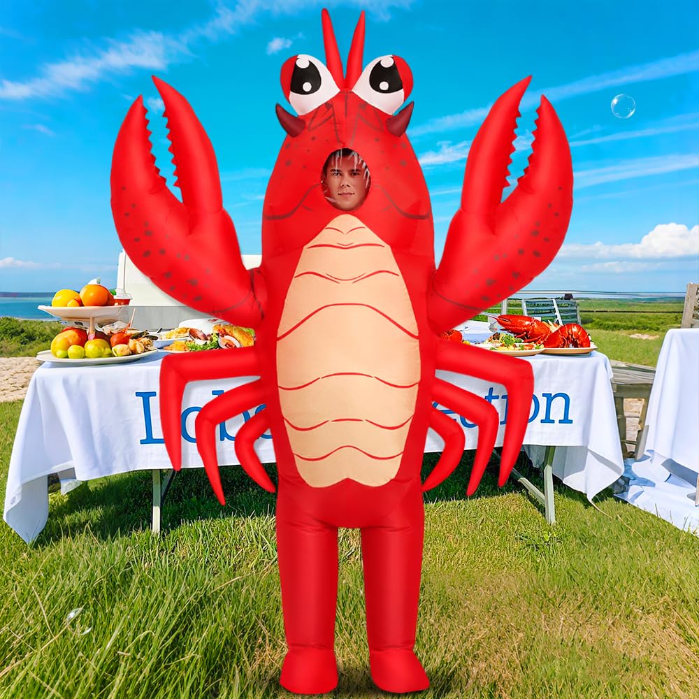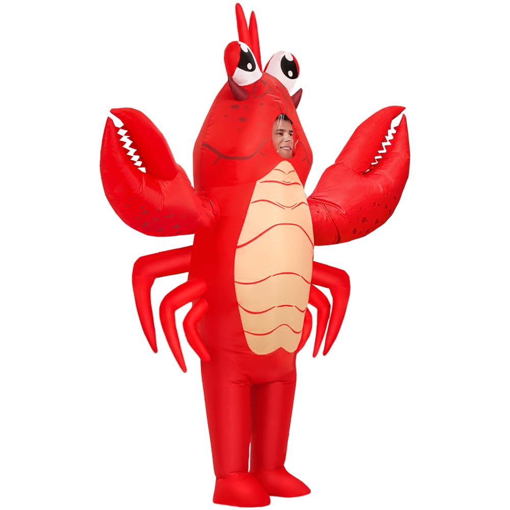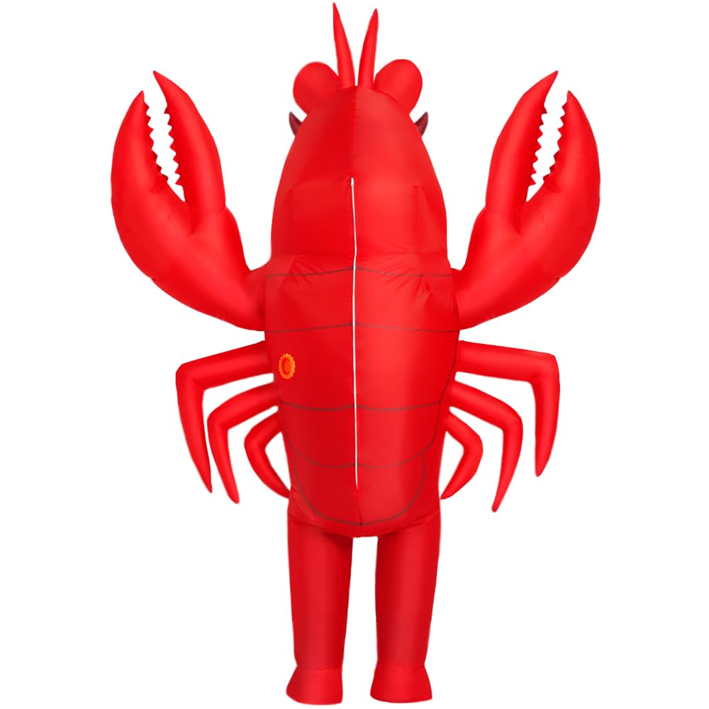 【Easy to Wear】Halloween lobster inflatable costume adult come with blower, wear it, swith on the button, the costume will inflate in minutes.