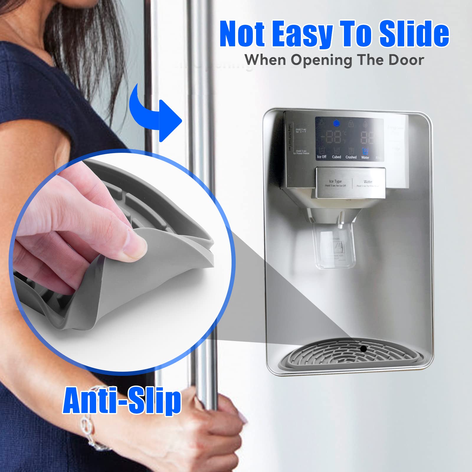 【Anti-Slip】 The refrigerator drip trays is designed with silicone, so the ice and water dispenser pan can stay in place when opening or closing the fridge door.