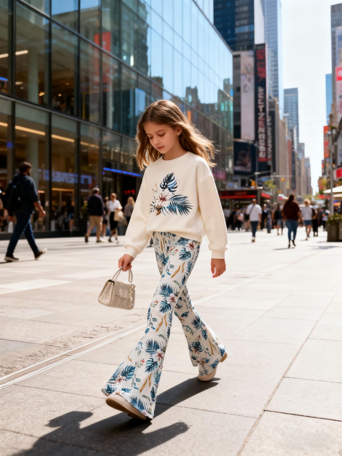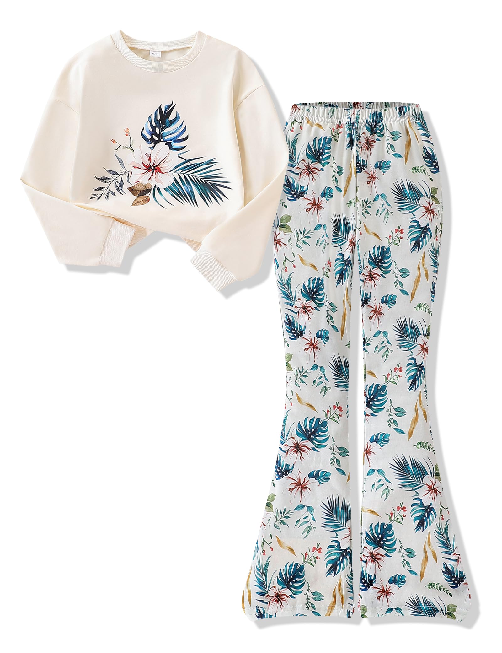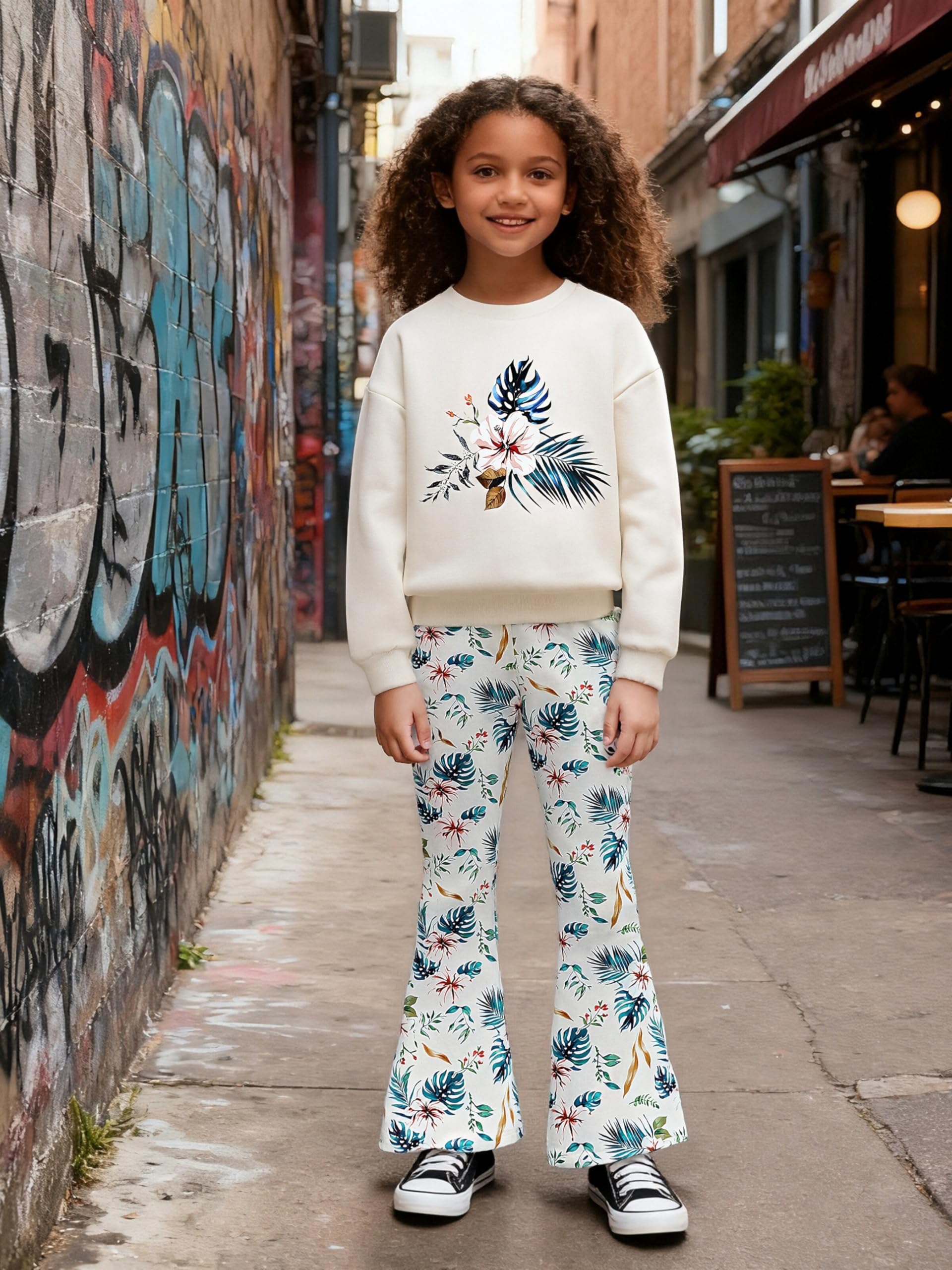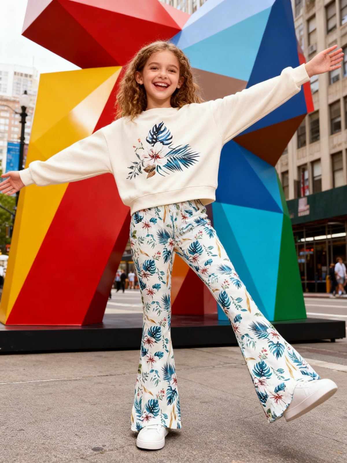 Unique Design: This floral-print hoodie for girls, paired with bell-bottom floral pants, introduces children to fresh fashion trends, enhancing their elegance and beauty when worn