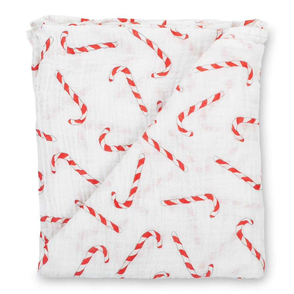 CANDY CANE CHRISTMAS SWADDLE - With a festive candy cane print, this blanket is a delightful addition to the nursery or a perfect prop for a newborn Christmas photoshoot. Parents will adore it as a seasonal gift or a warm welcome for their little holiday bundle
