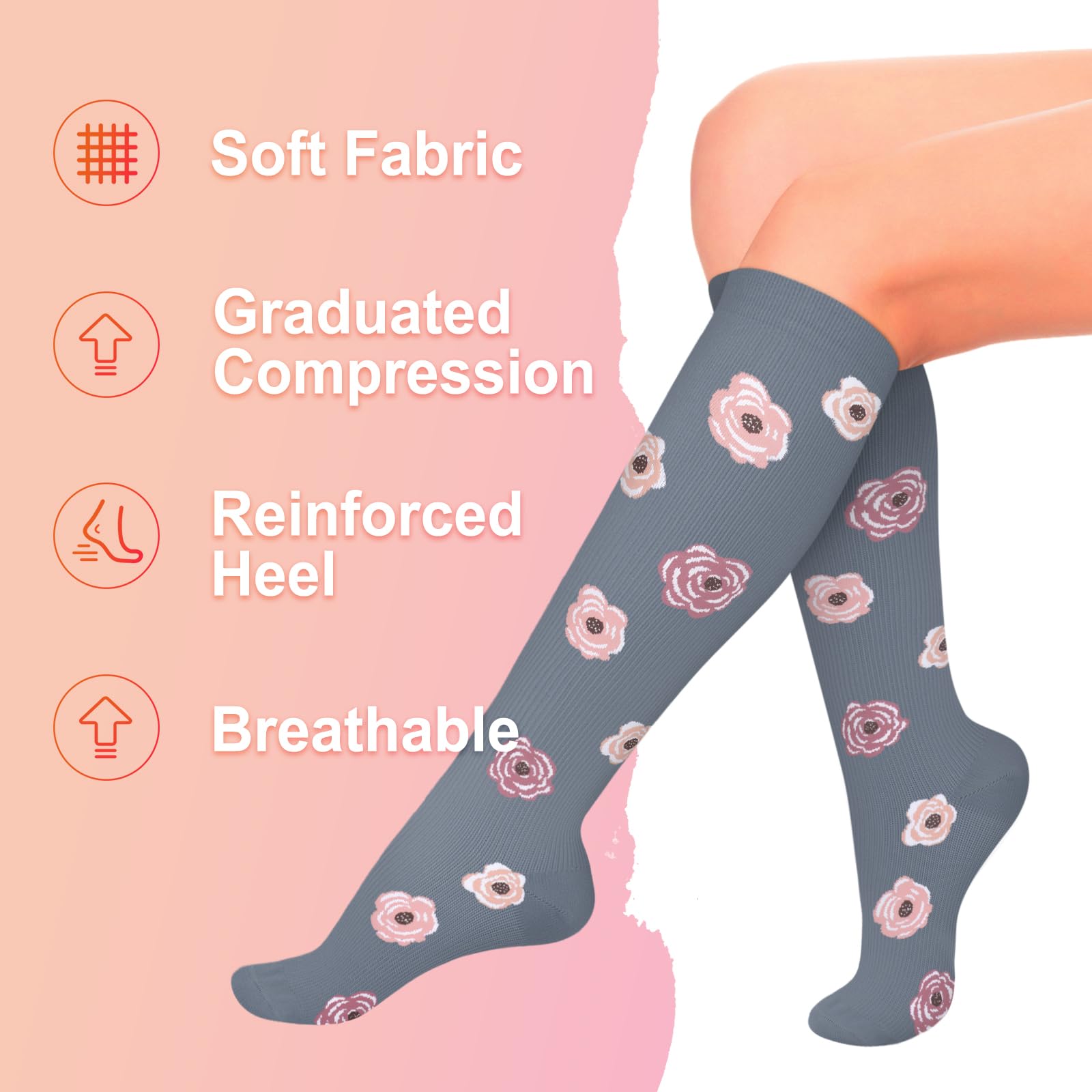 COMPRESSION SOCKS FOR WOMEN- Our compression socks are different from traditional compression socks because we adhere to the highest standards of producing professional athletic socks. Our compression socks have a mild level of graduated compression,they provide relief for anyone experiencing tired,achy legs or mild swelling and enhance blood circulation for faster recovery, relieve varicose veins.Provides better protection for your feet.