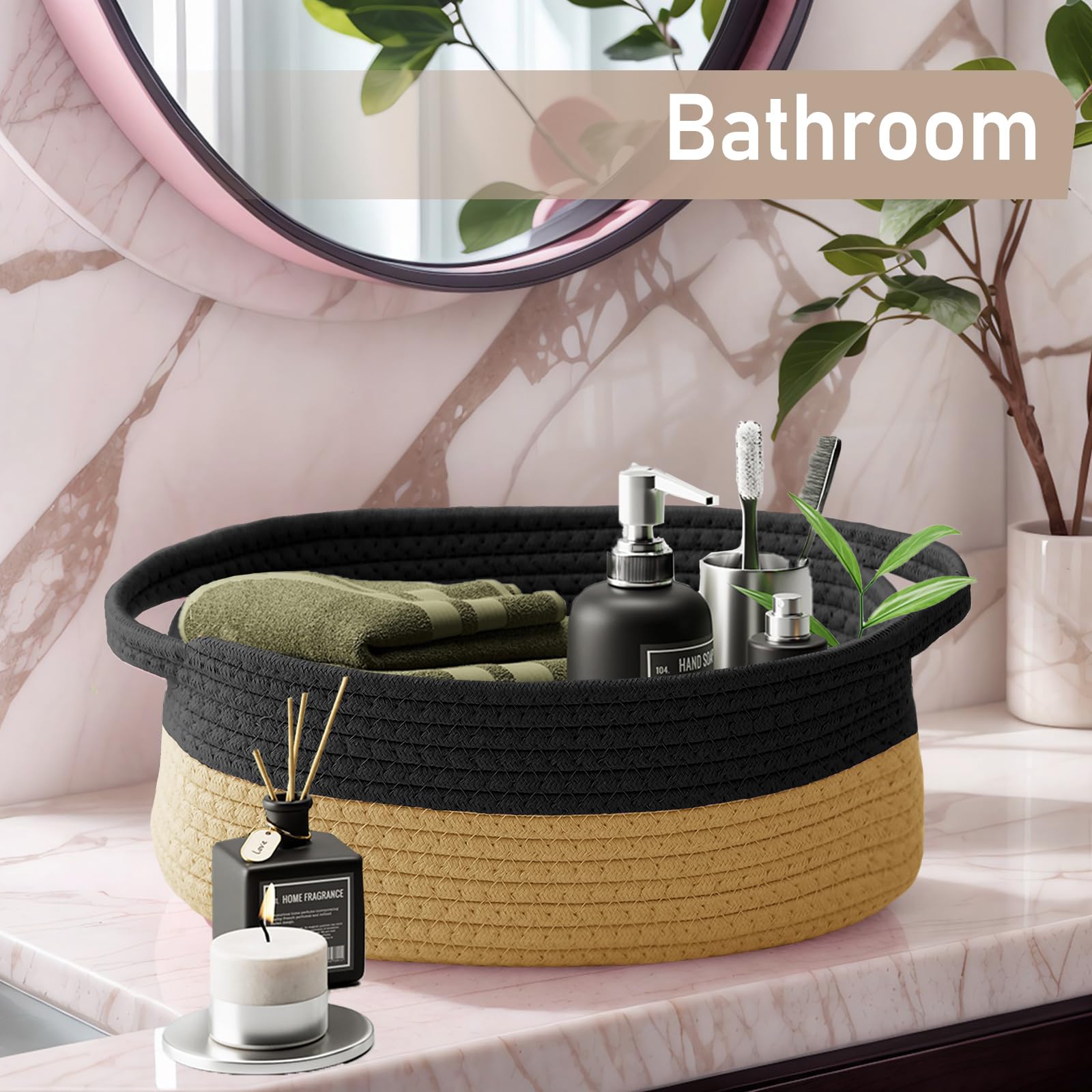Handmade Woven Basket---Made from natural materials, this woven baskets for storage option is safe for kids and pets. Crafted by skilled artisans, each cotton rope basket is unique in texture and quality.