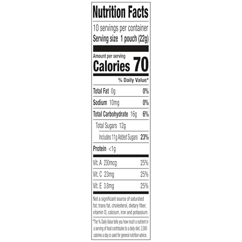 A PICK YOU CAN FEEL GOOD ABOUT: One of the funnest snacks ever invented, they are fat free, gluten free and an excellent source of Vitamin A, C, and E. Plus, they are only 70 calories per pouch