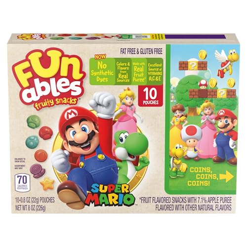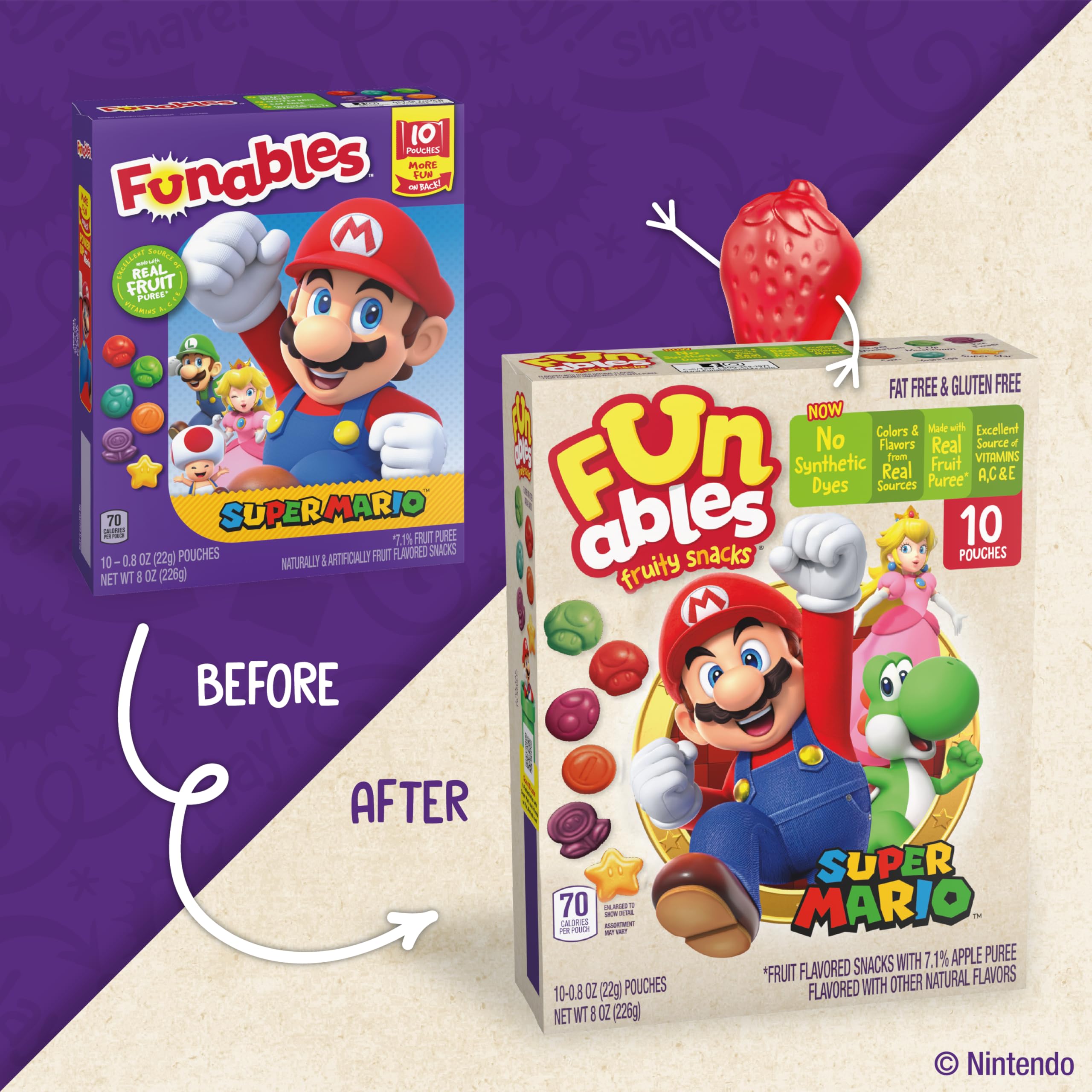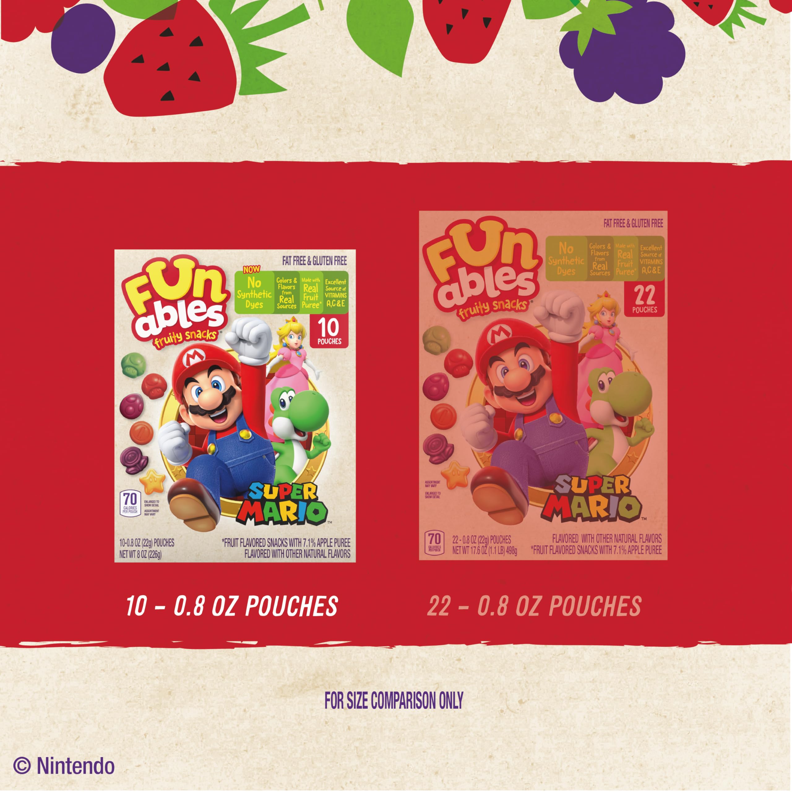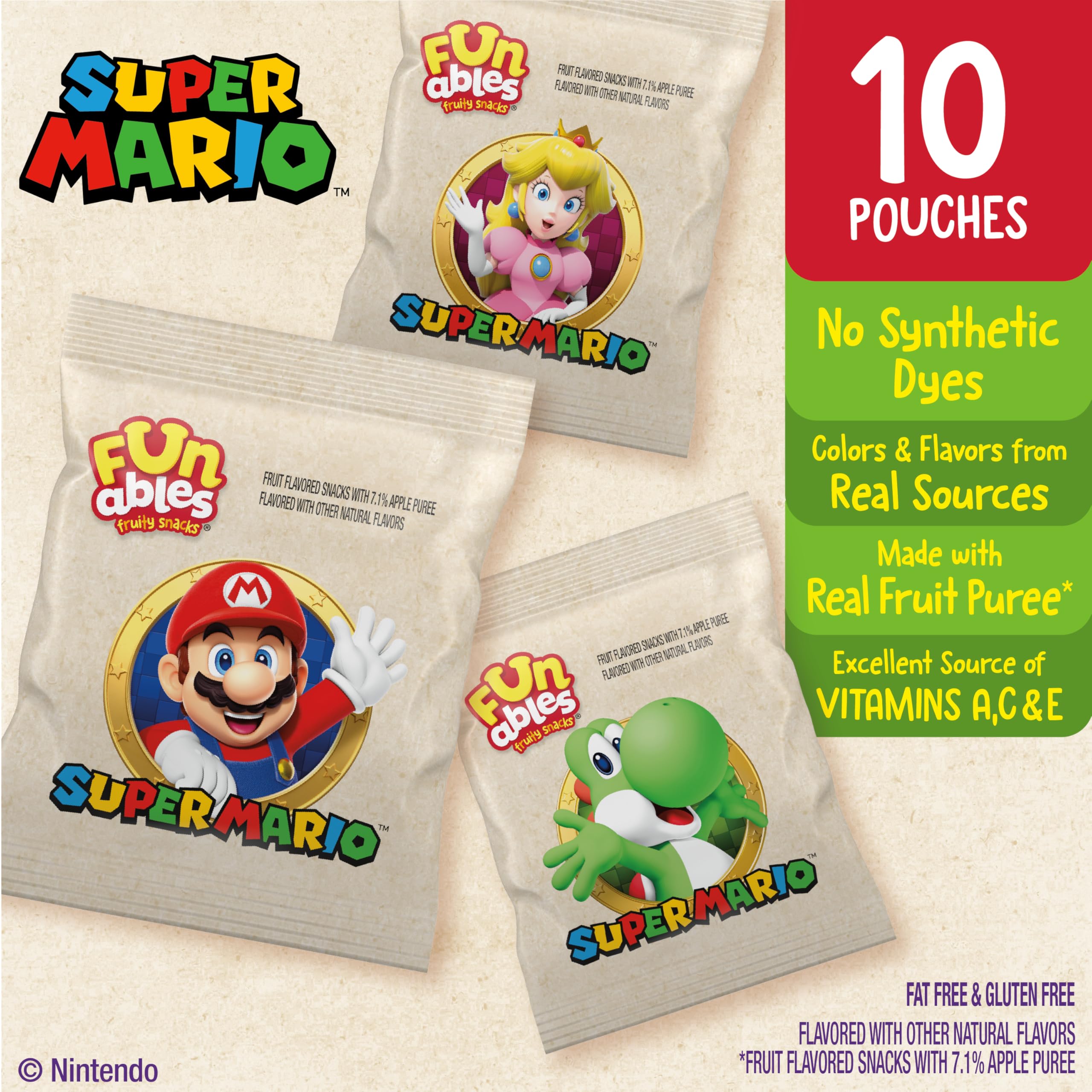 FRUITY SNACK PLANS COME TOGETHER: This pack of Funables Super Mario fruit flavored snacks includes ten individually wrapped 0.8 oz pouches of fruity snacks