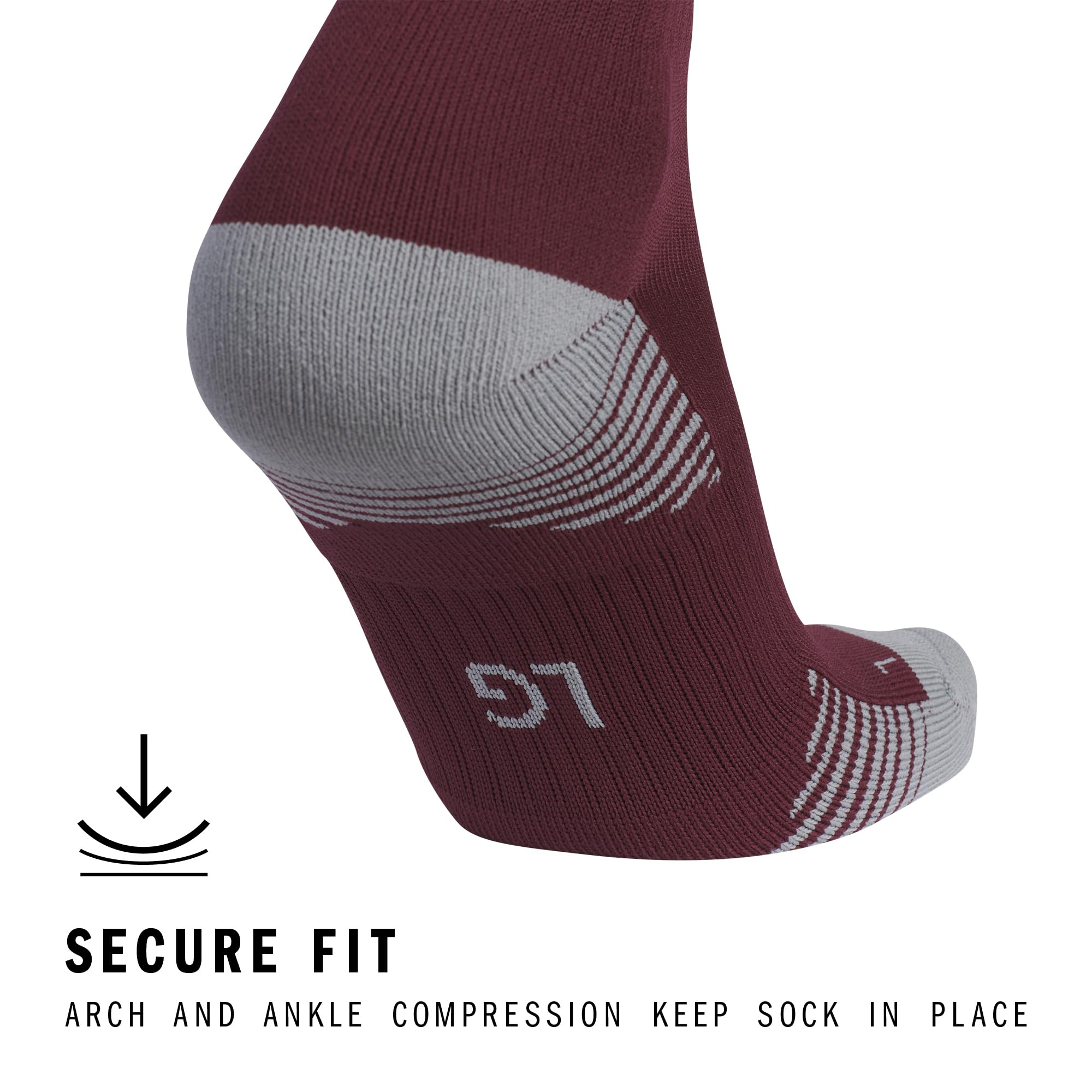 MOISTURE CONTROL: Our moisture-wicking socks for men and women keep feet dry from sweat, providing comfort in men's sports compression socks for arch and ankle. Color: Team Maroon/White