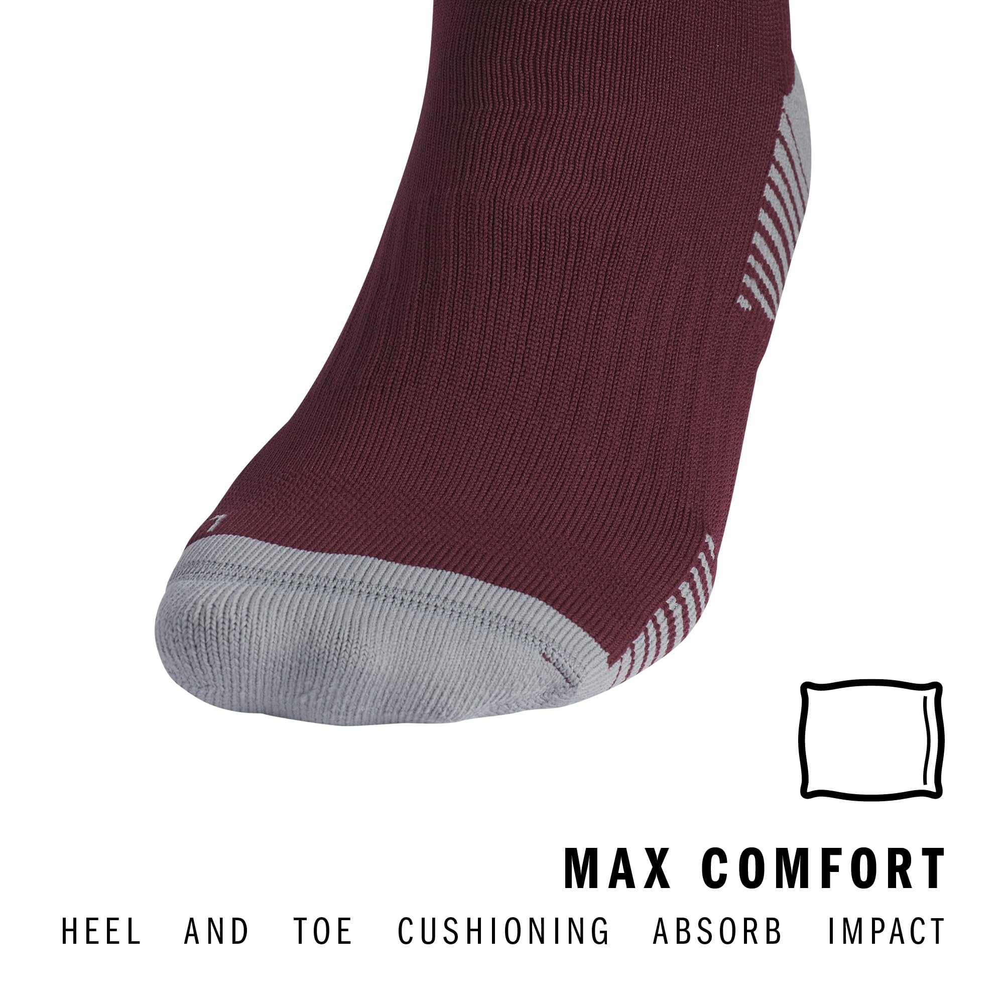 Description Get ready for the game with these adidas soccer socks, designed to elevate your performance on the field. These womens and mens socks offer moisture-wicking yarn to keep your feet dry from sweat. The classic 3-Stripe finish at the welt and center front Badge of Sport logo add a touch of style that's synonymous with adidas soccer. Whether you’re in the midst of a competitive match or a casual game, cushioning at the heel and toe provides the shock absorption you need. The adidas Copa Zone Cushion 5.0 socks feature compression for a secure fit and additional support. These womens and mens compression socks include arch and ankle support, providing stability. The airy mesh and lightweight construction offer a close fit and excellent ball touch, making them ideal running socks for men or women who seek both comfort and performance. These over-the-calf socks offer the classic fit and protection you'd expect. Perfect for both casual use and high-intensity activities, these socks are a versatile addition to any athlete’s wardrobe. Experience the superior quality and functionality of adidas soccer socks.